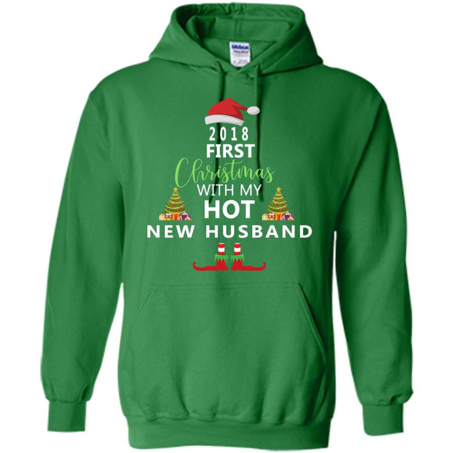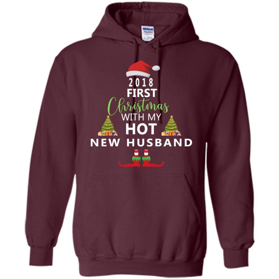 2018 Frist Christmas With My Hot New HUSBAND, Chirtmas Tree Design – Gildan Heavy Blend Hoodie