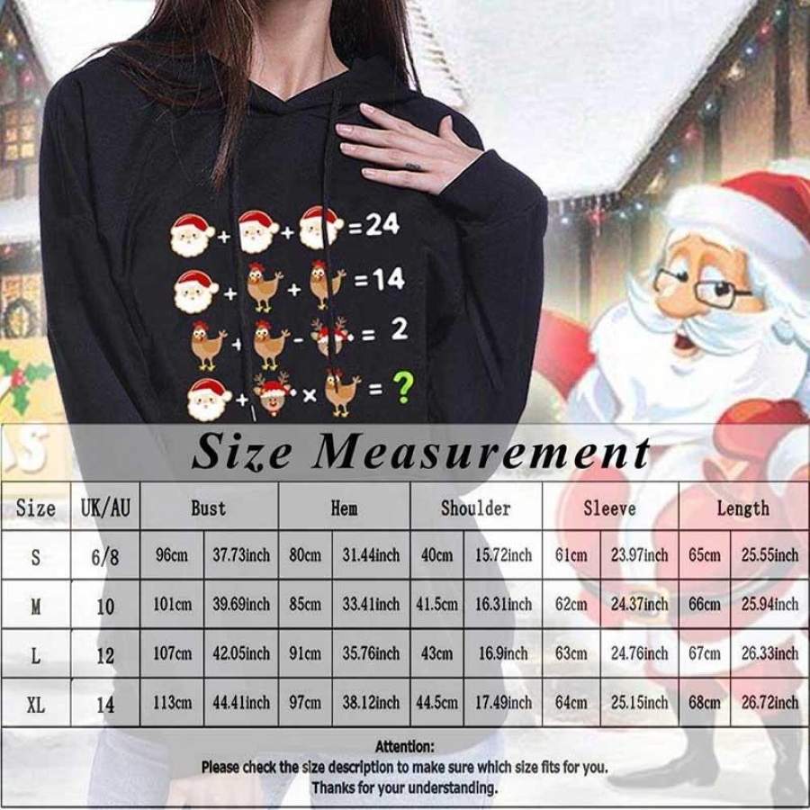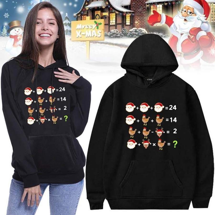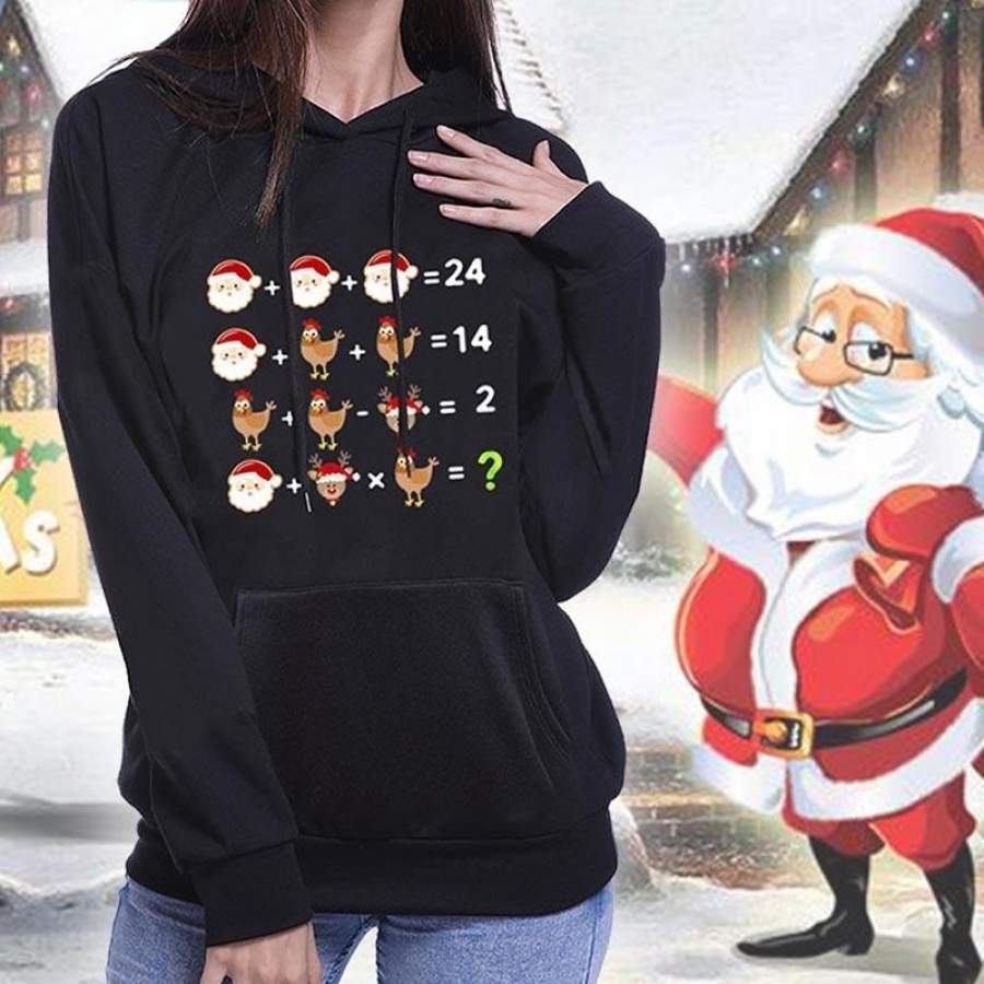 2019 New Women Men Fashion Casual Christmas Funny Santa Arithmetic Printed Hoodie Long Sleeve Hooded Sweatshirt Pullover