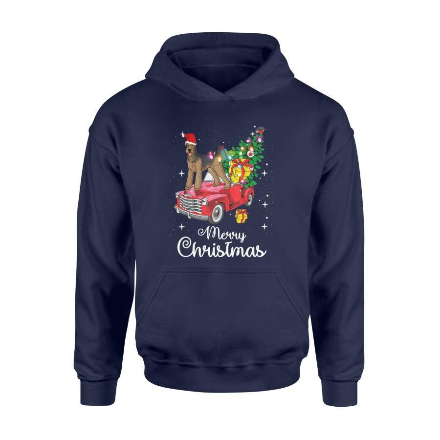 Airedale Terrier Rides Red Truck Christmas Pajama T-Shirt – Standard Hoodie