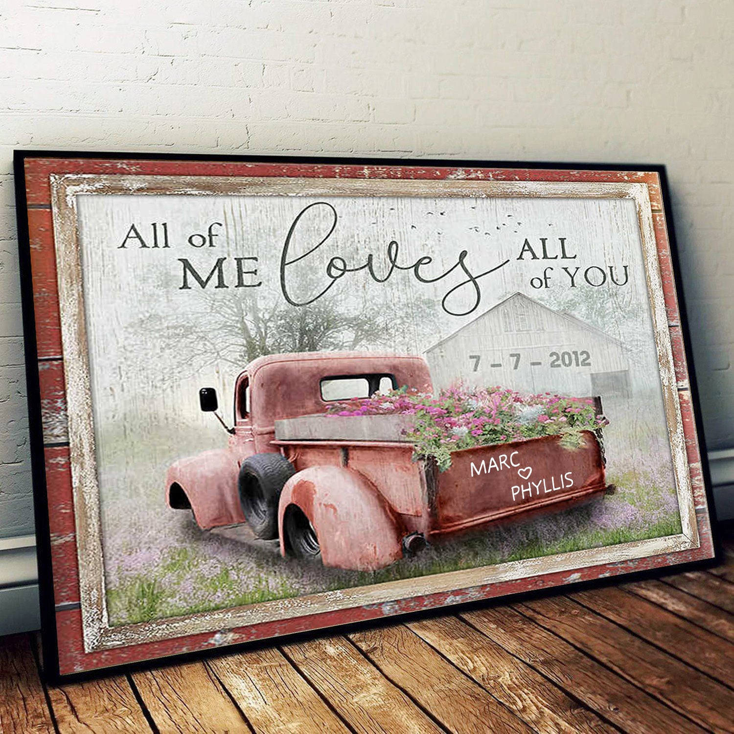 All Of Me Loves All Of You Barn And Flower Truck Poster | Custom Name And Date Personalized Custom Canvas Wall Art Decor Gift Poster