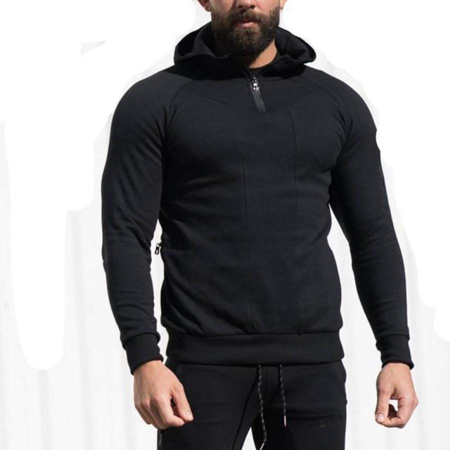 Autumn Winter Men Solid hoodie Fitness Bodybuilding Sweatshirts fashion Casual Hooded Zipper Slim Jacket male Cotton Sportswear