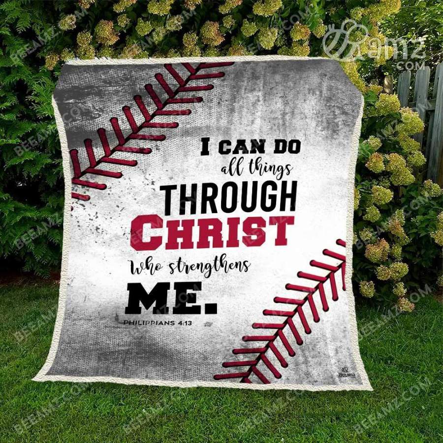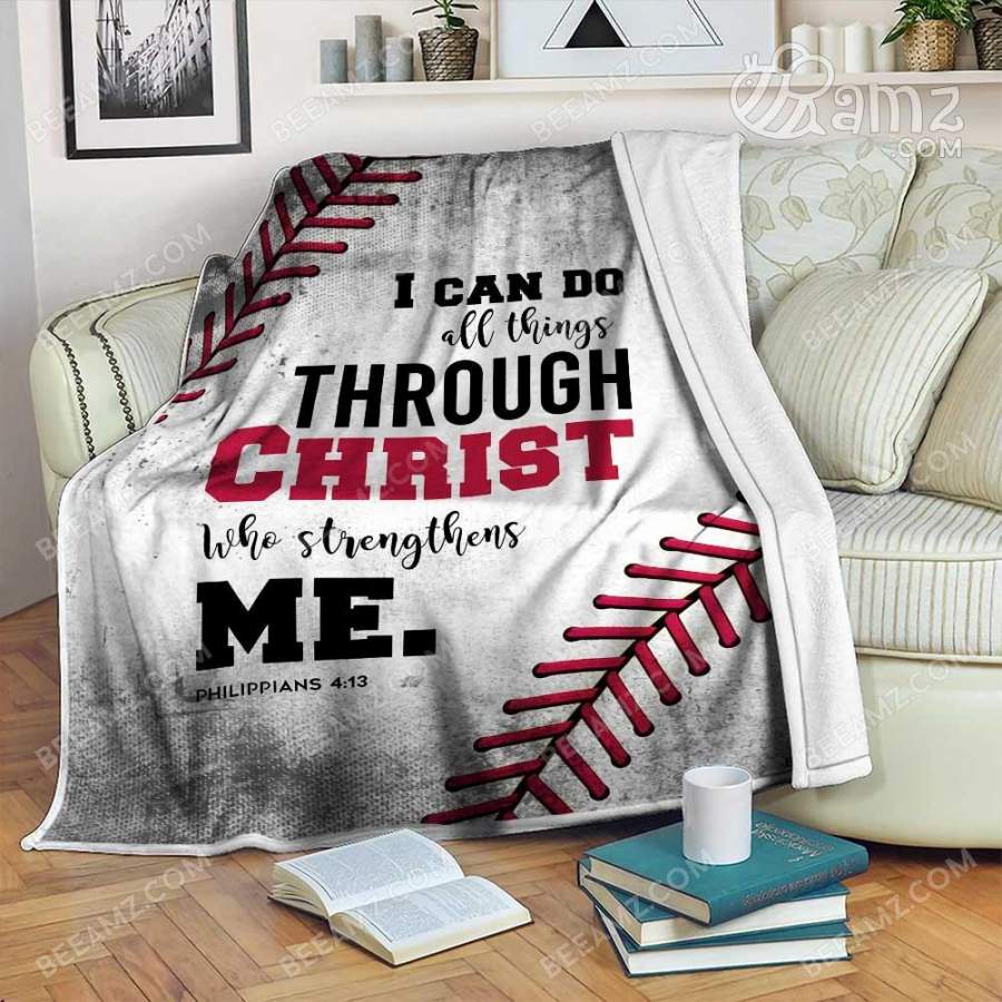 BeeAmz 3D Custom Blanket Gift for Baseball Lovers – I Can Do All Things Through Christ Blanket – BSBL09