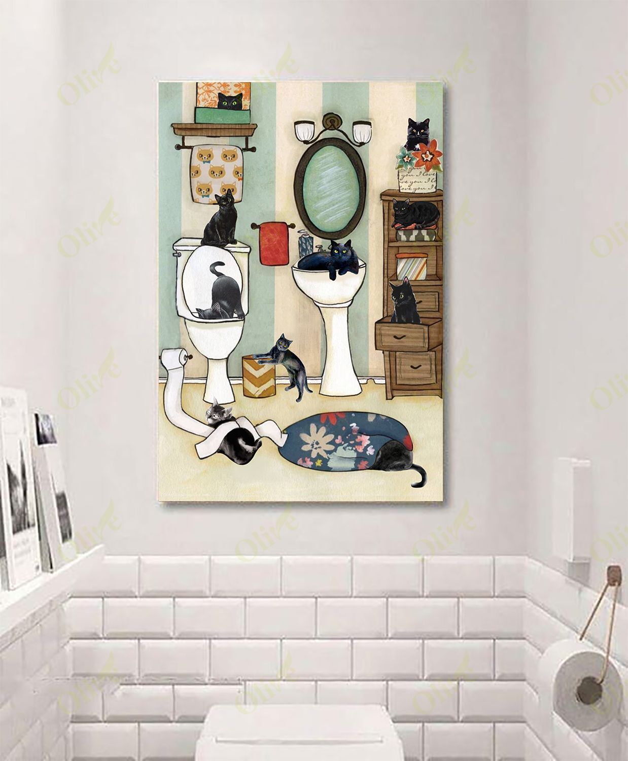 Black Cat In The Bathroom Canvas And Poster | Wall Decor Visual Art
