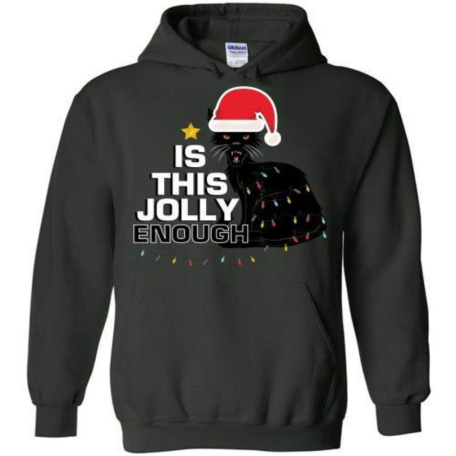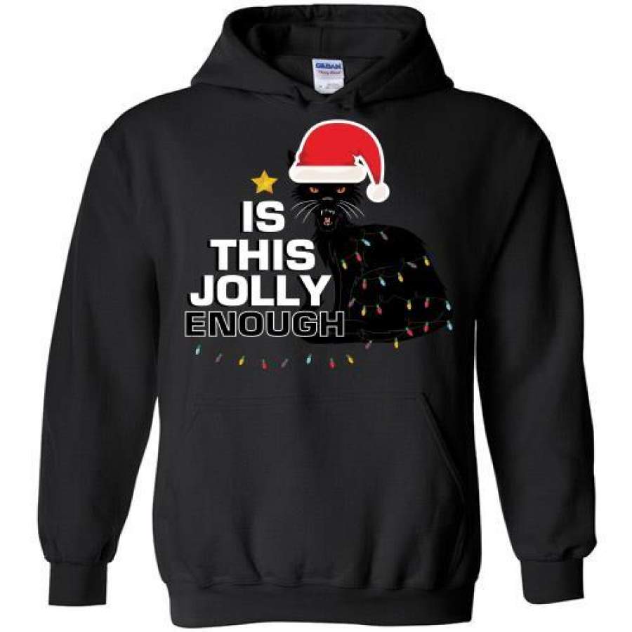Black Cat Is This Jolly Enough Christmas Lights Hoodie