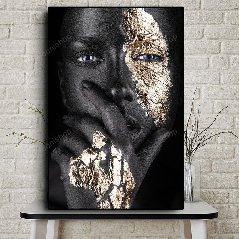 Black Gold African Woman Portrait Canvas Painting Sexy Model Beauty Art Portrait Photography Poster Study Bedroom Decor Pictures