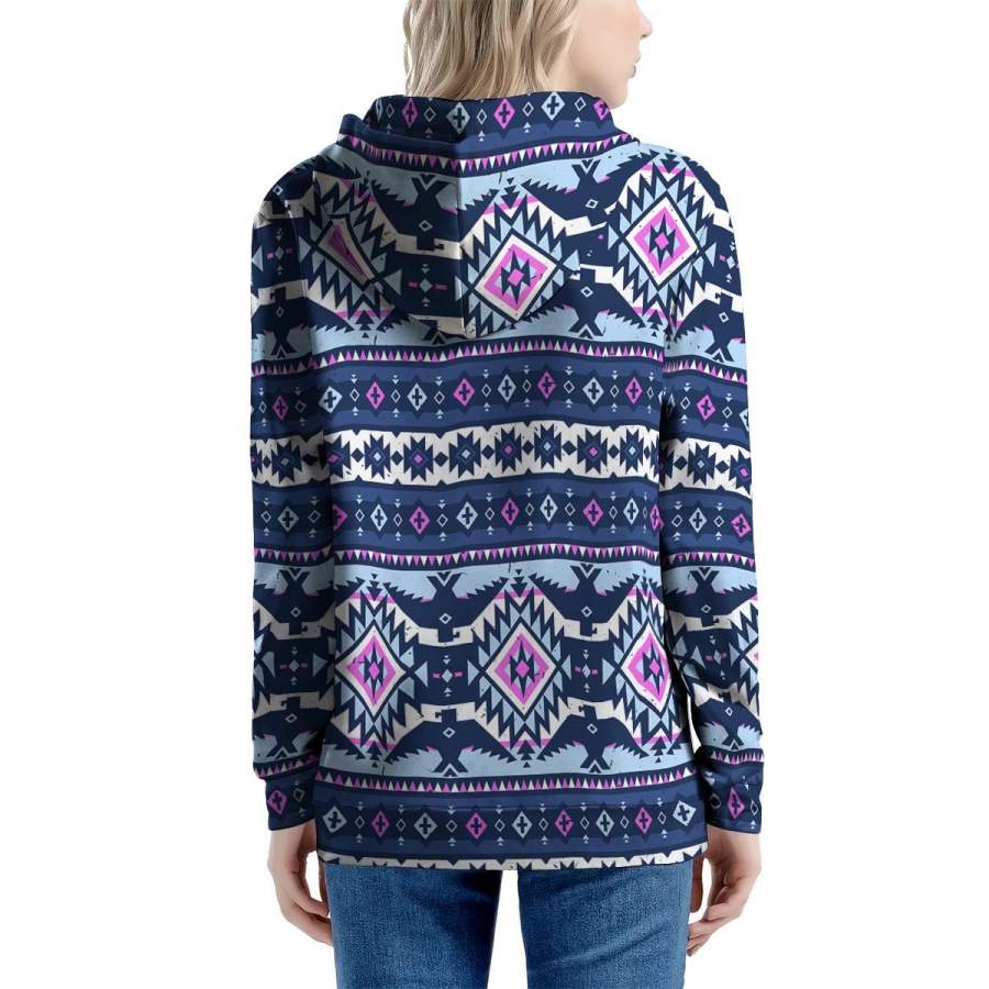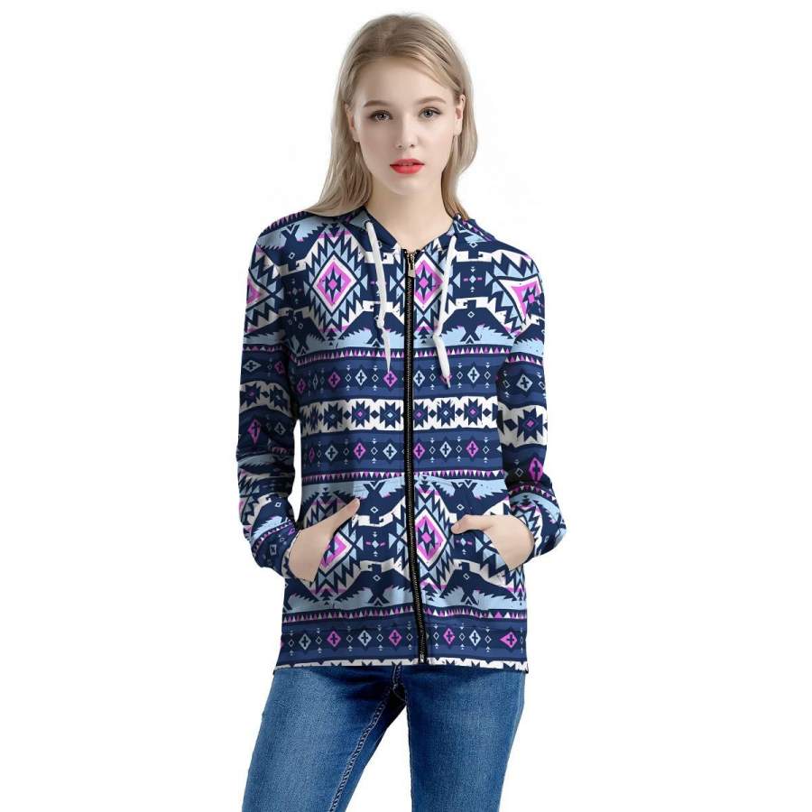 Blue Tribal Aztec Eagles Women’s Zip Up Hoodie
