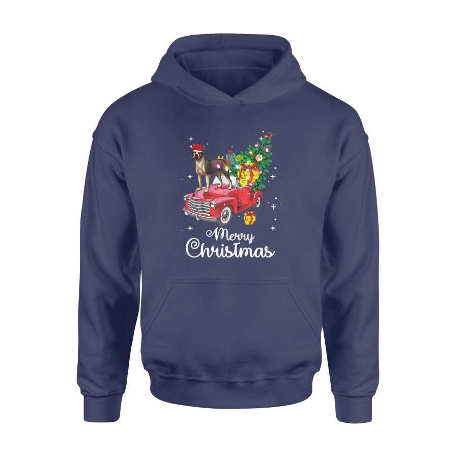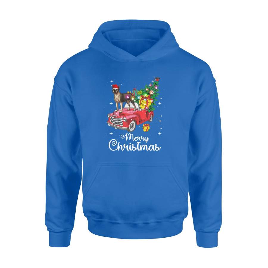 Boston Terrier Rides Red Truck Christmas Pajama T-Shirt – Standard Hoodie
