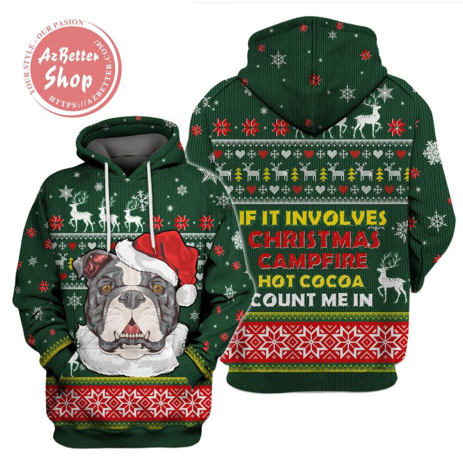 Bulldog If It Involves Christmas Campfire 3D Hoodie