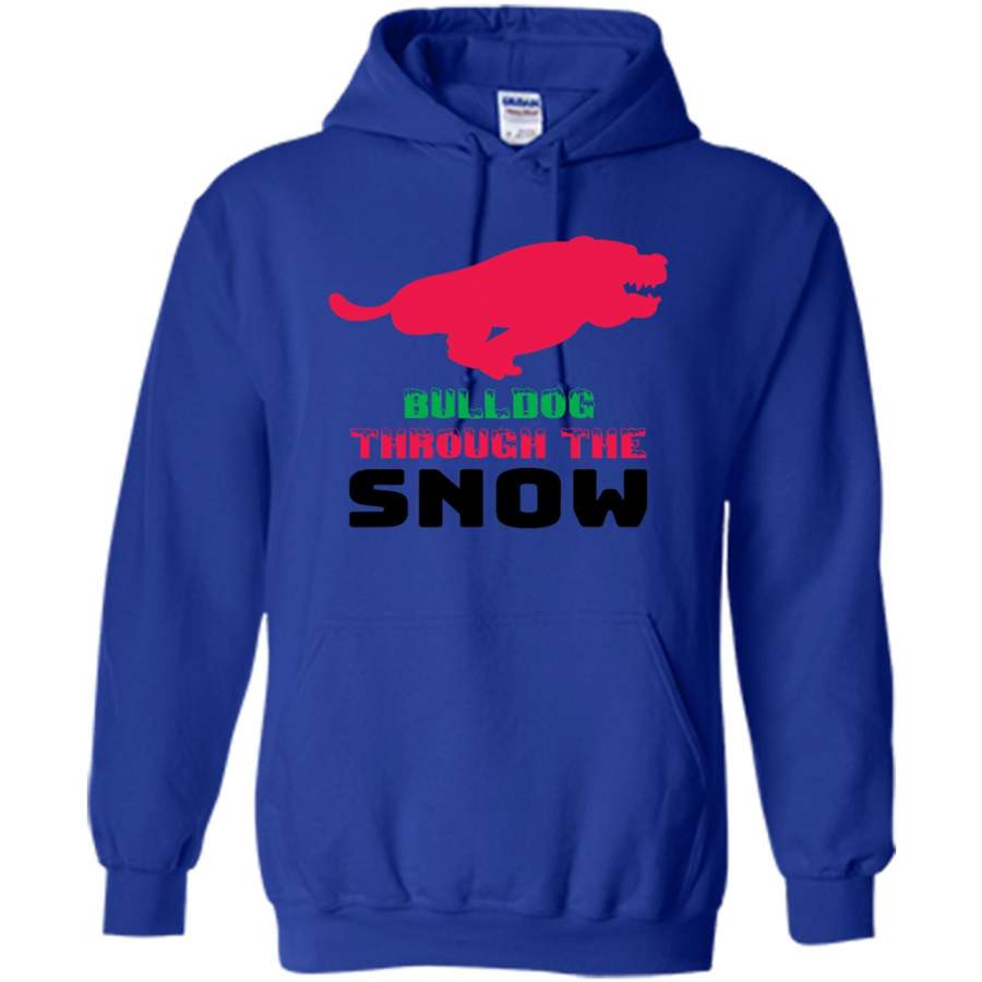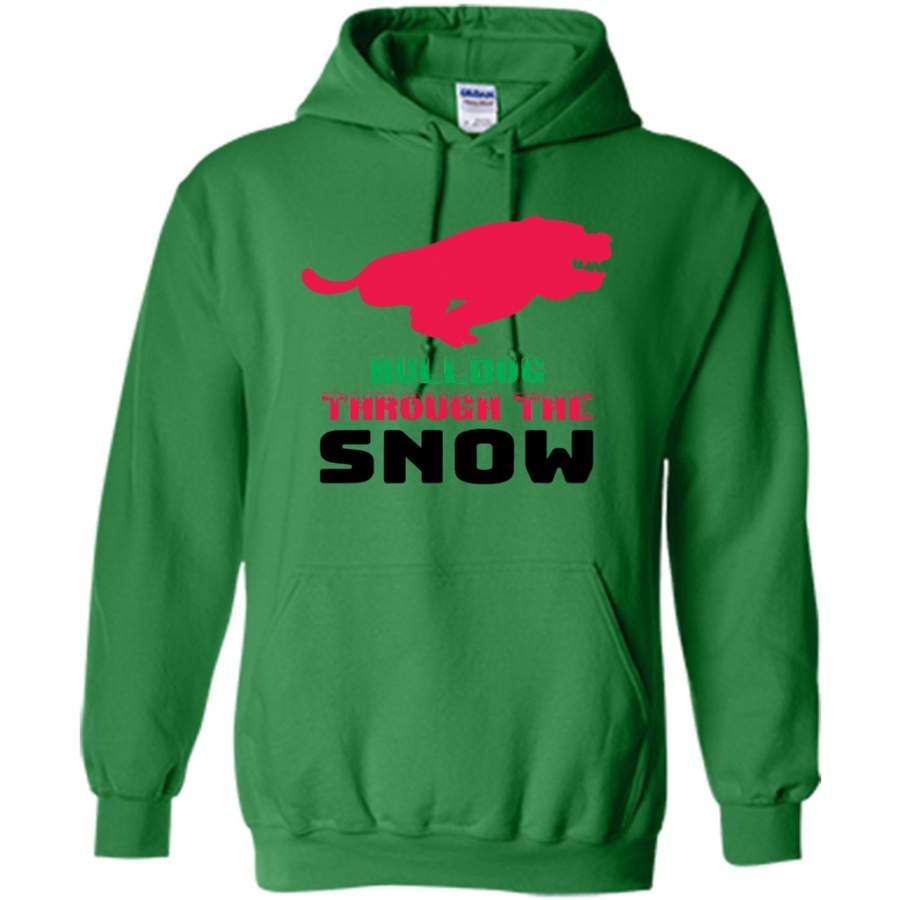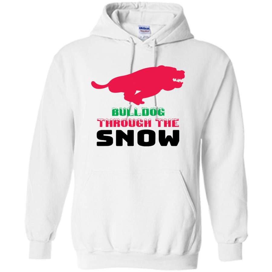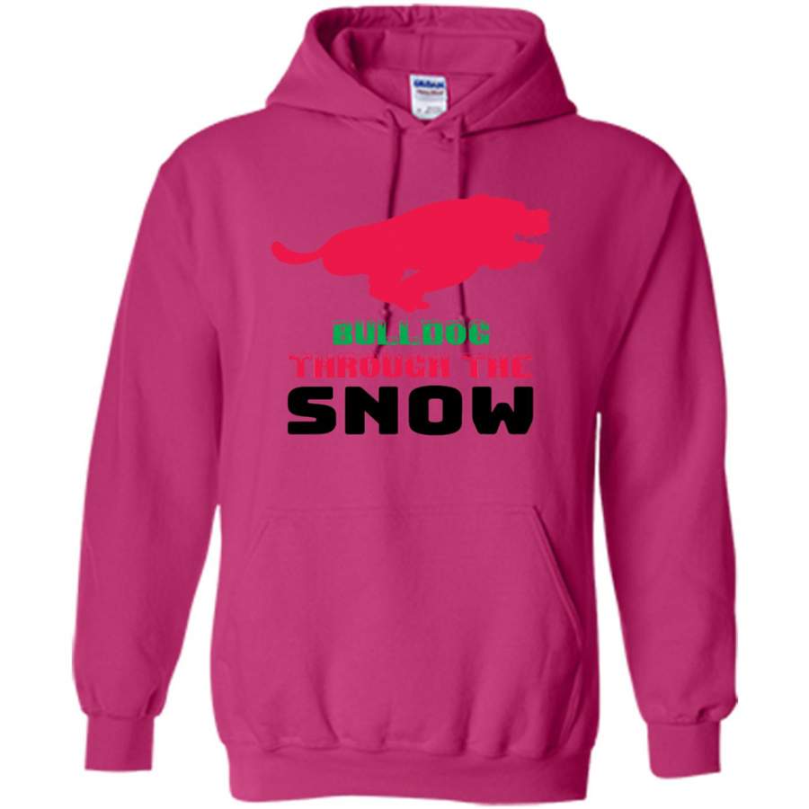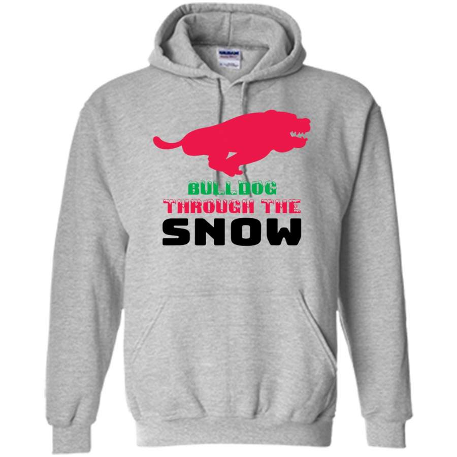 BullDog Through The Snow, Christmas Gift – Gildan Heavy Blend Hoodie