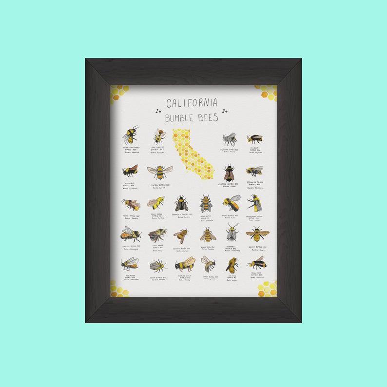 California Bumble Bees Poster- Watercolor Print- Bee Keeper Gifts