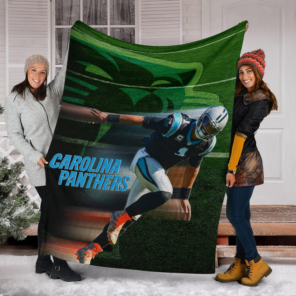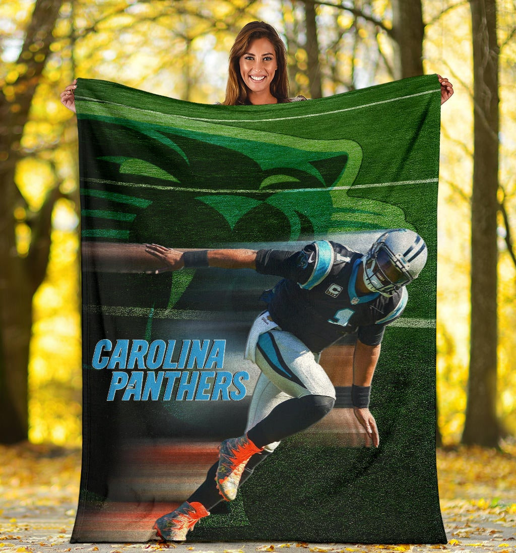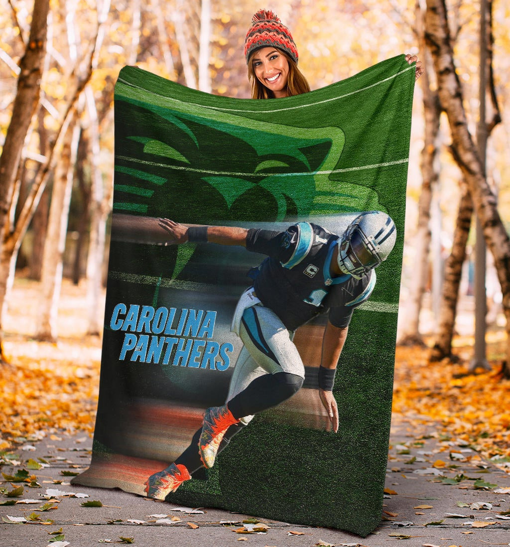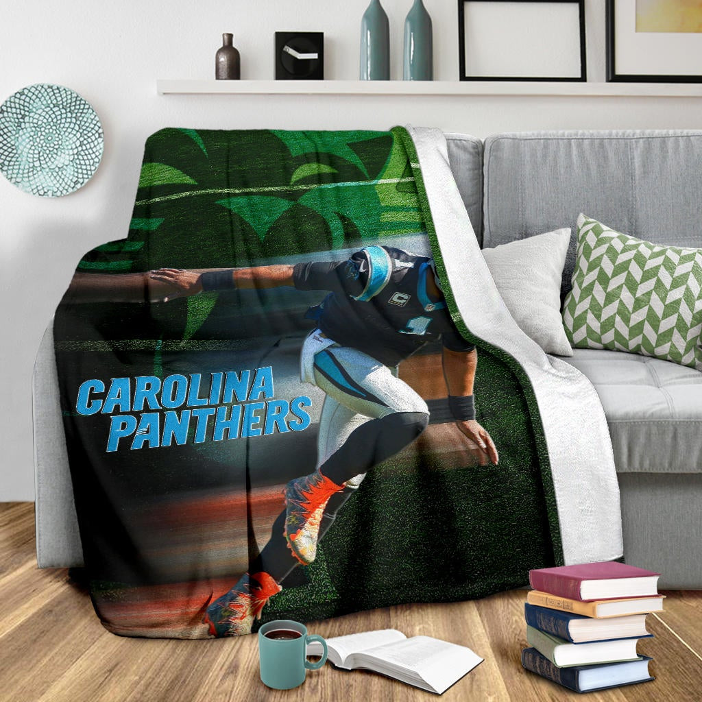 Style: Premium Blanket - Carolina Panthers American Football Team Fleece Blanket Cam Newton Running Lightning Speed Fleece Blankets NT010404