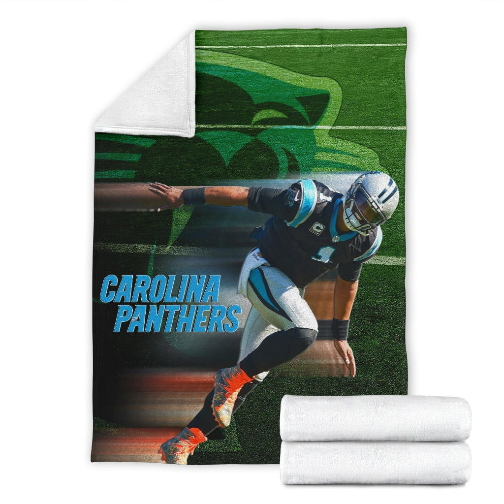• Premium Blanket - Carolina Panthers American Football Team Fleece Blanket Cam Newton Running Lightning Speed Fleece Blankets NT010404