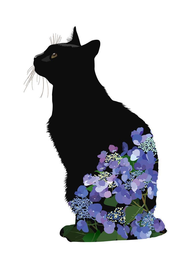 Cat And Flowers Illustration Print Portrait Poster & Canvas Gift For Friend Family Home Decor Wall Art Visual Art