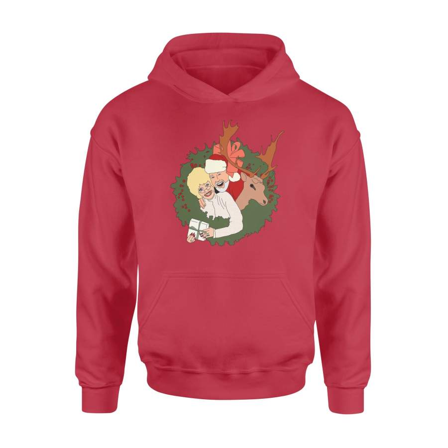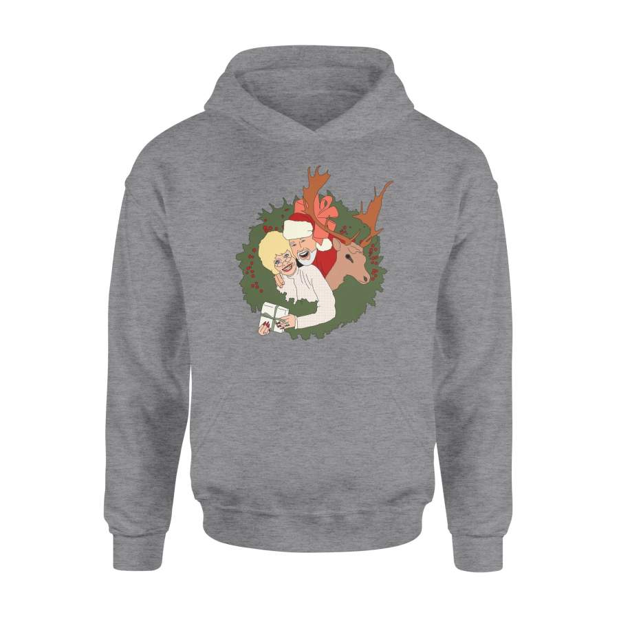 Christmas Gift Holly Leaf Christmas Ring Having Santa And Old Girl Reindeer Under The Ground – Standard Hoodie