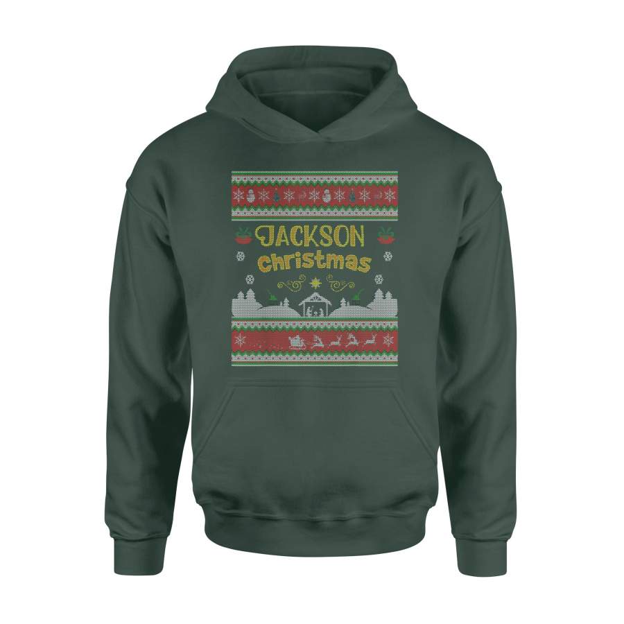Christmas gift idea Jackson Xmas Ugly Style With Jesus – Knitted Effect T-Shirt – Standard Hoodie