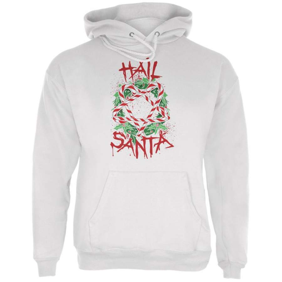 Christmas Hail Santa Pentagram Wreath Mens Hoodie