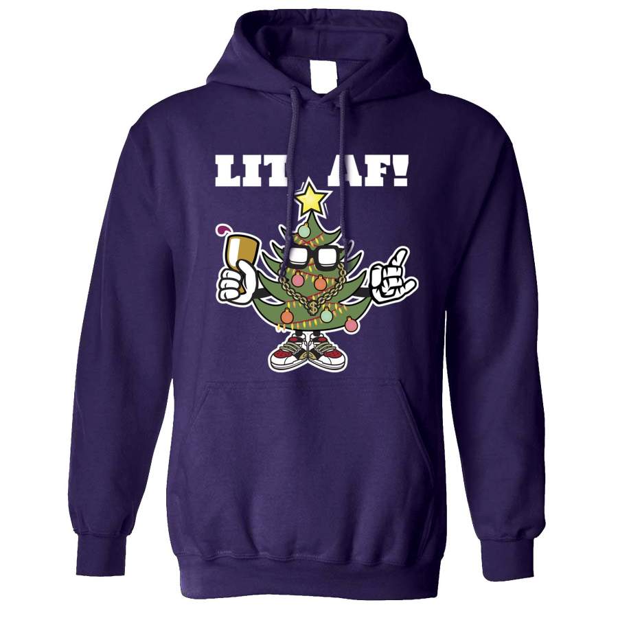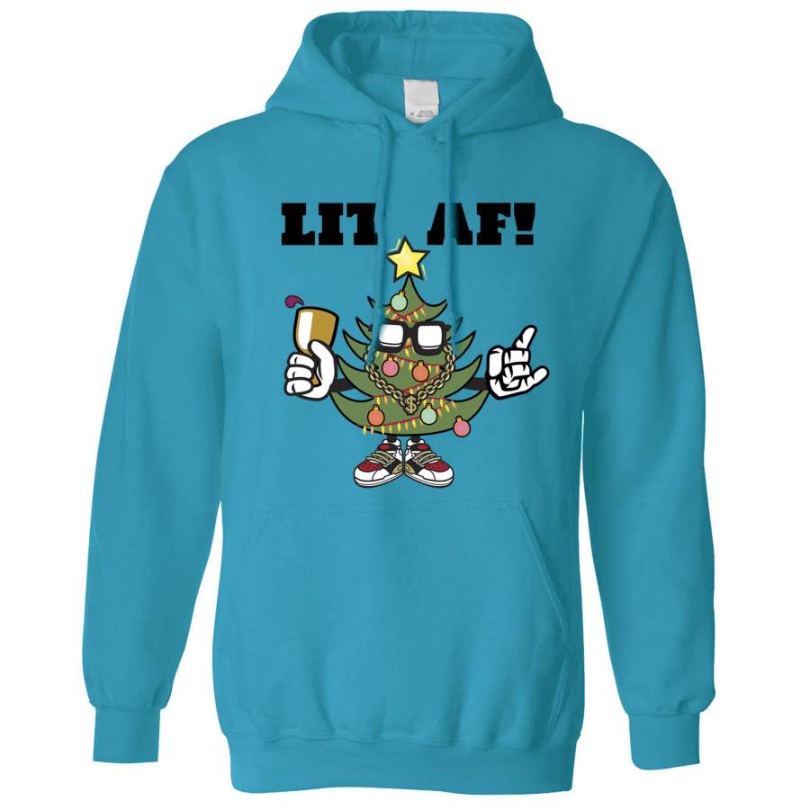 Christmas Hoodie Lit AF Festive Tree Light Decoration Hooded Jumper