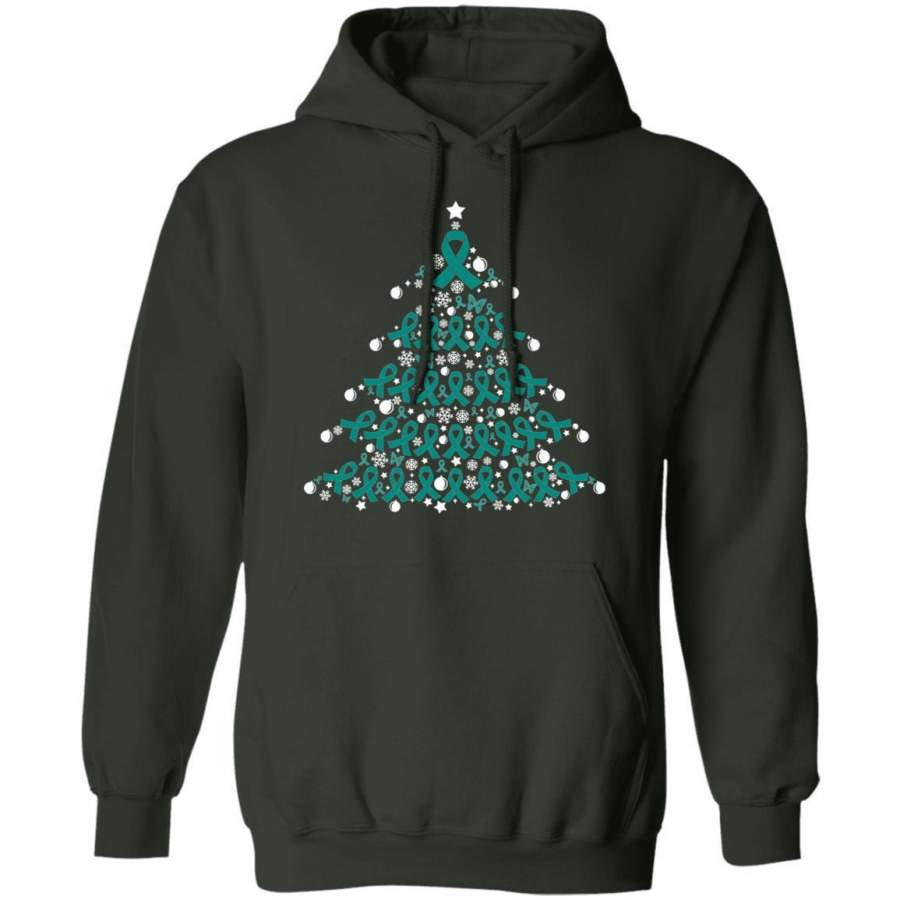 Christmas Hoodie Ovarian Cancer Awareness Xmas Tree Hoodie VA12