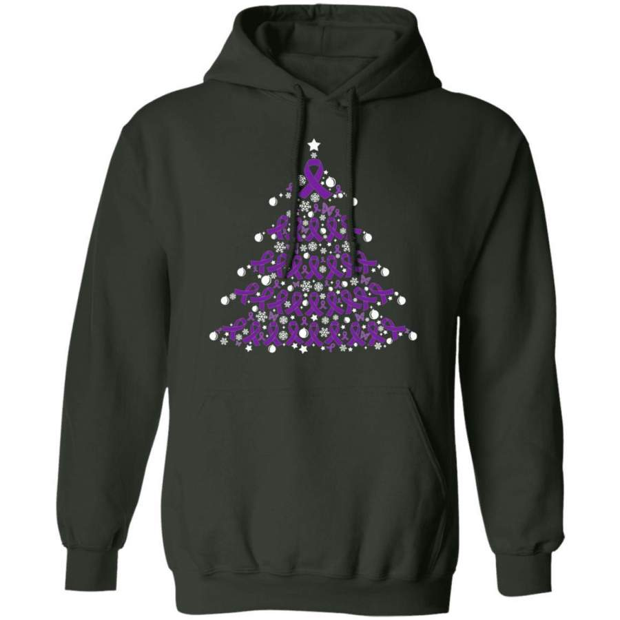 Christmas Hoodie Pancreatic Cancer Awareness Xmas Tree Hoodie VA12