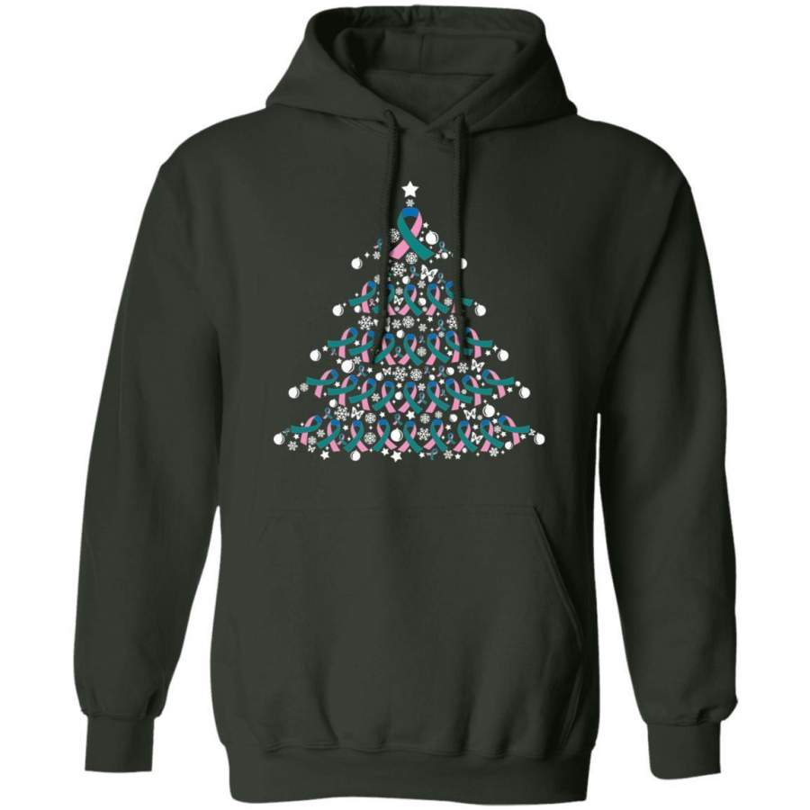 Christmas Hoodie Thyroid Cancer Awareness Xmas Tree Hoodie VA12
