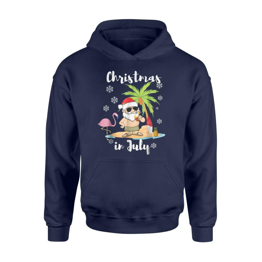 Christmas In JulyHawaiian Flamingo Santa Tee Hoodie