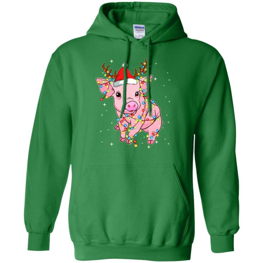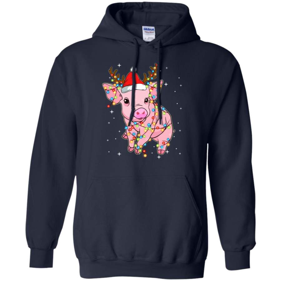 Christmas Lights Pig Wearing Santa Hat Funny Xmas Hoodie