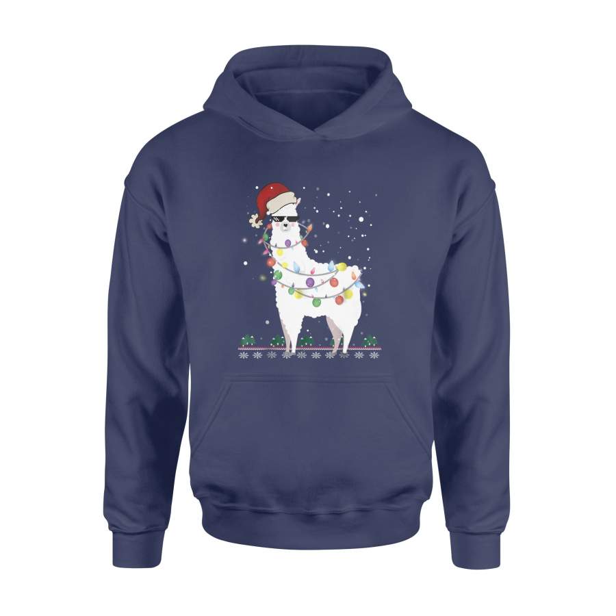 Christmas Llama Santa Hat Ugly Xmas Tree Alpaca Shirt – Standard Hoodie