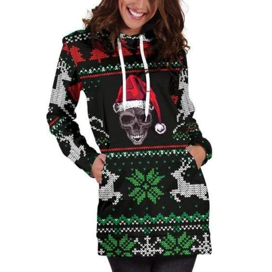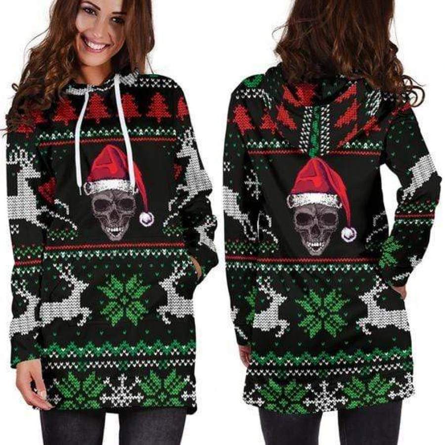 Christmas Santa Skull Black Hoodie Dress 3D All Over Print