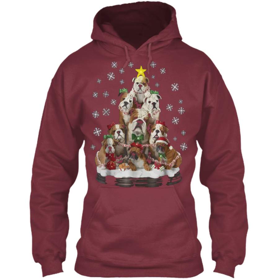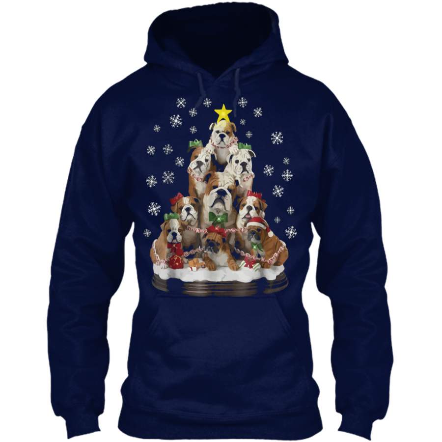 Christmas Sweater English Bulldog Xmas Tree Gift Pullover Hoodie 8 oz