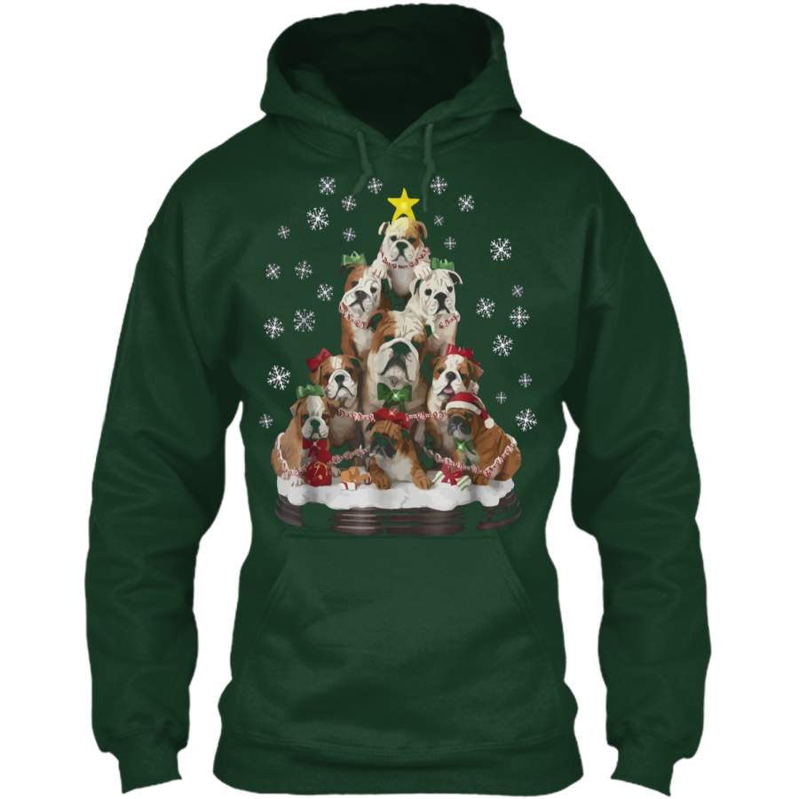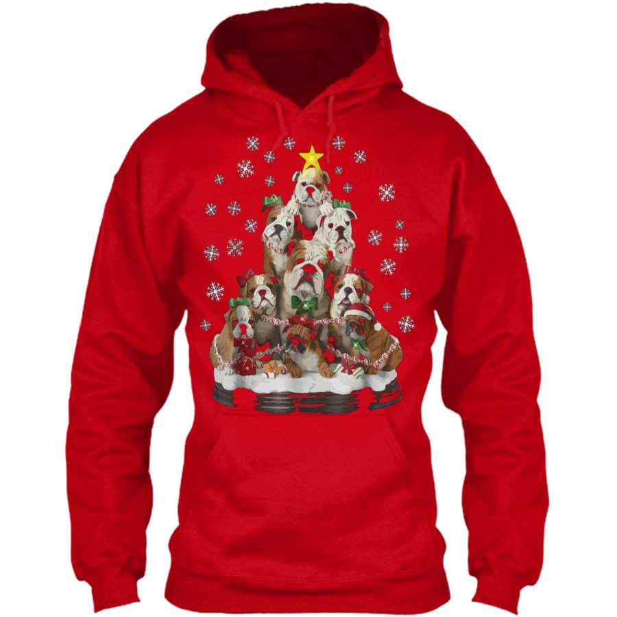 Christmas Sweater English Bulldog Xmas Tree Gift Pullover Hoodie Christmas Gift Ideas