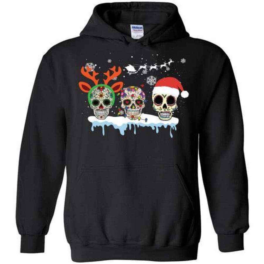 Christmas Three Mexican Flower Sugar Skull In Snow Xmas Hoodie
