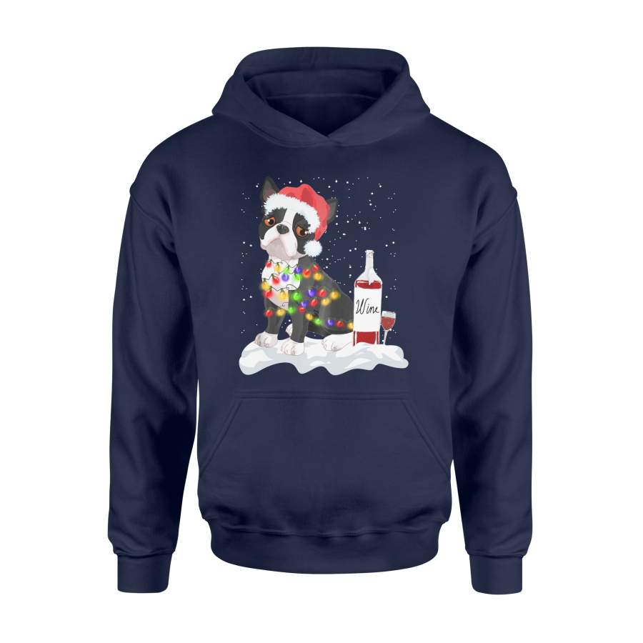 Christmas Wine Boston Terrier T Shirt Boston Terrier Light Christmas Shirt – Standard Hoodie