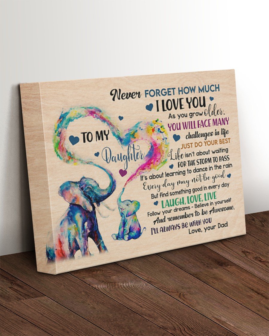 Color Elephant To My Daughter Believe In Yourself Landscape Poster & Canvas Gift For Daughter From Dad Home Decor Wall Art Visual Art