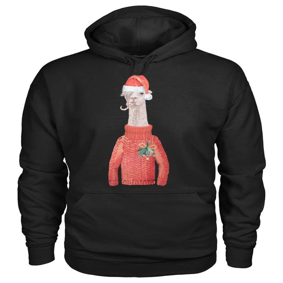 Cool Llama Wearing Santa Hat Christmas Gift Hoodie