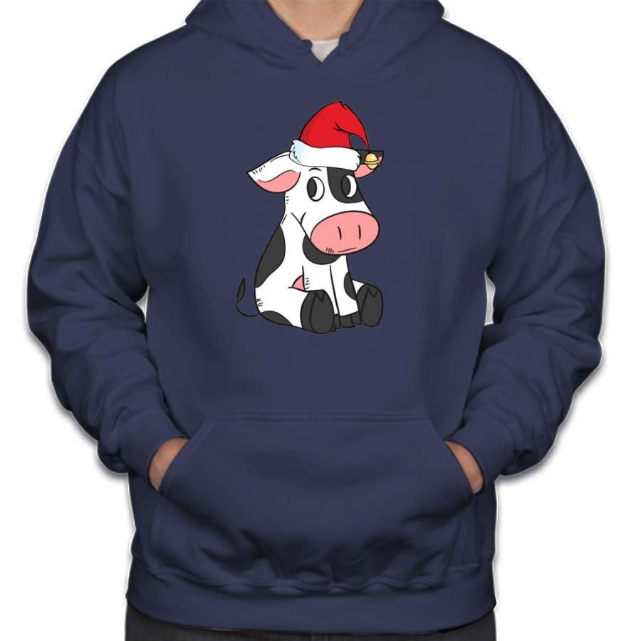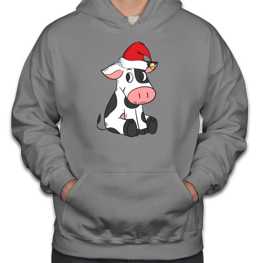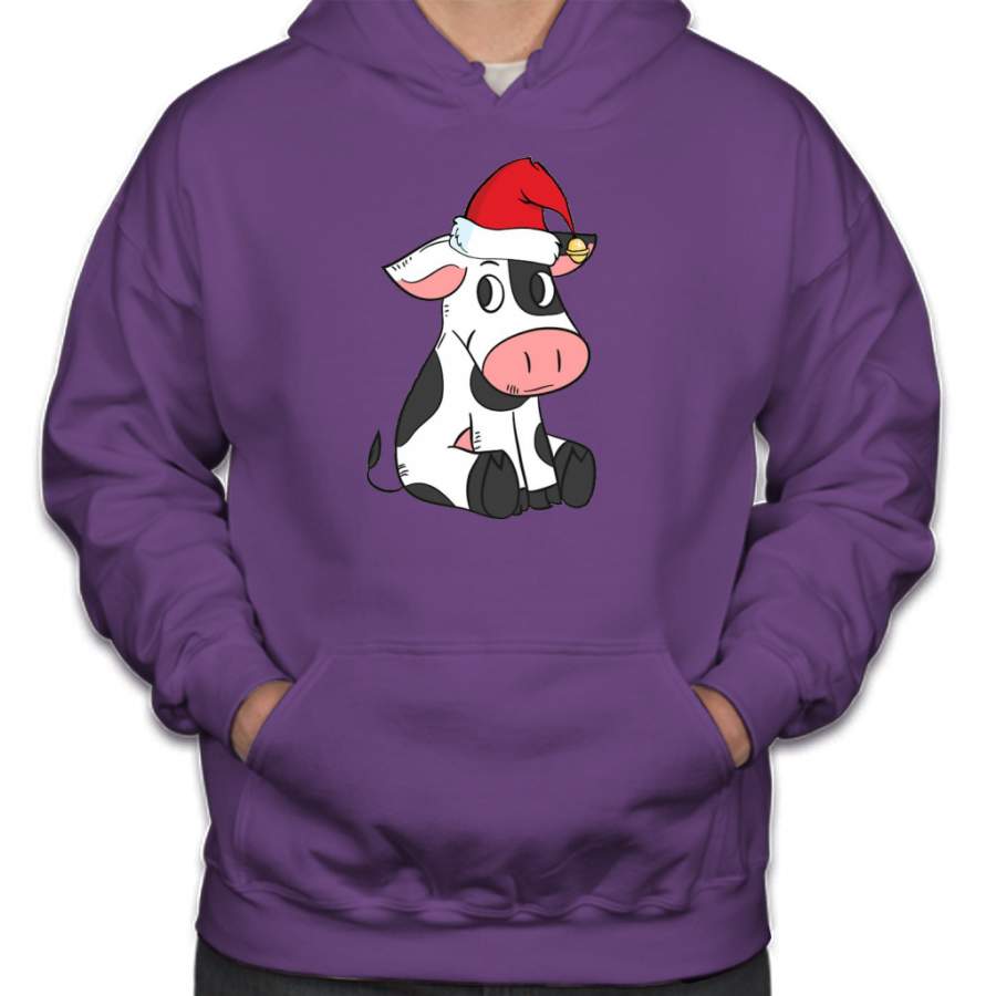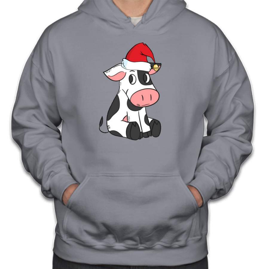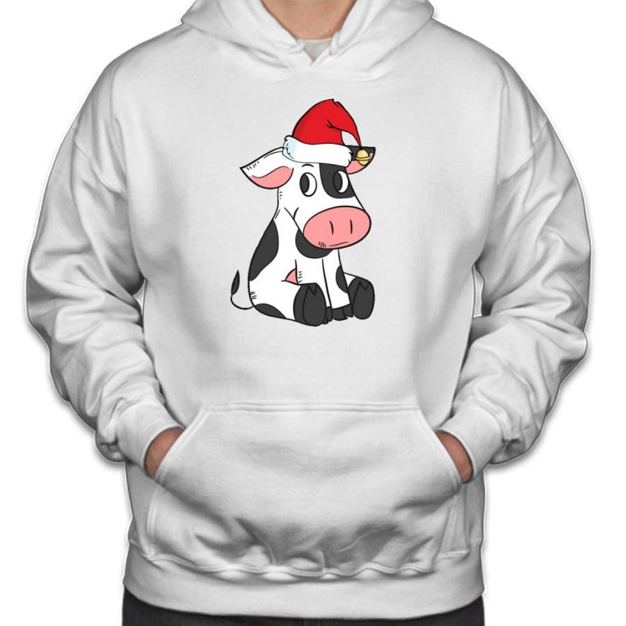 Cow Face with Christmas Santa Hat for Cow Lovers Hoodie
