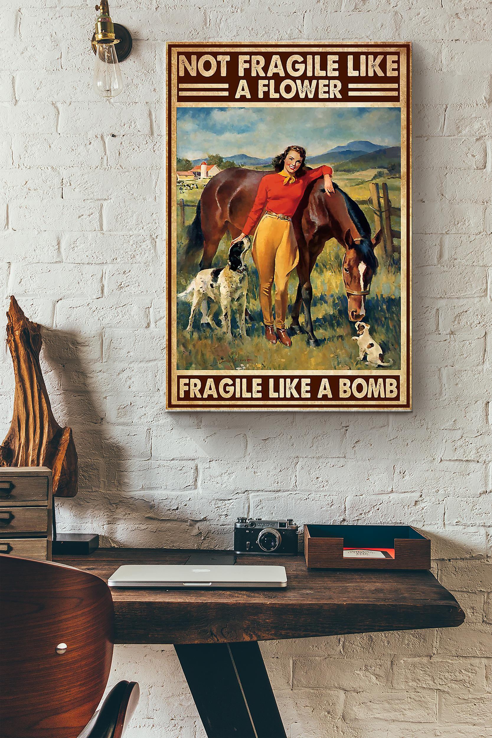 Cowgirl Not Fragile Like A Flower Poster – Animal Wall Art – Gift For Horse Lover Horse Rider Horseback Rider Wrapped Canvas