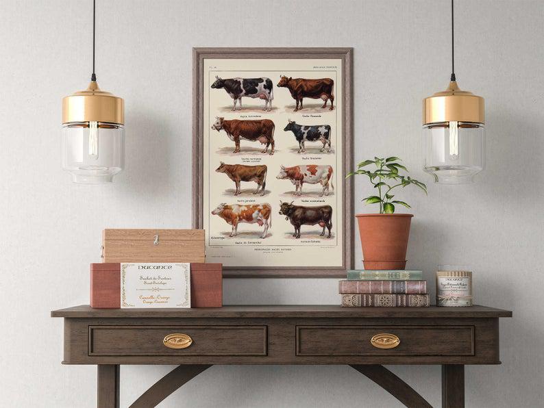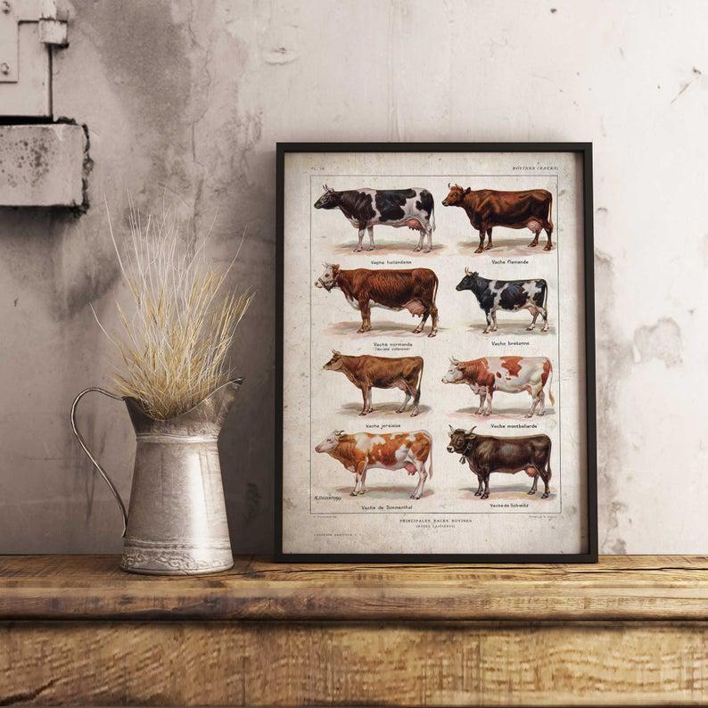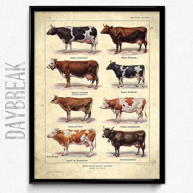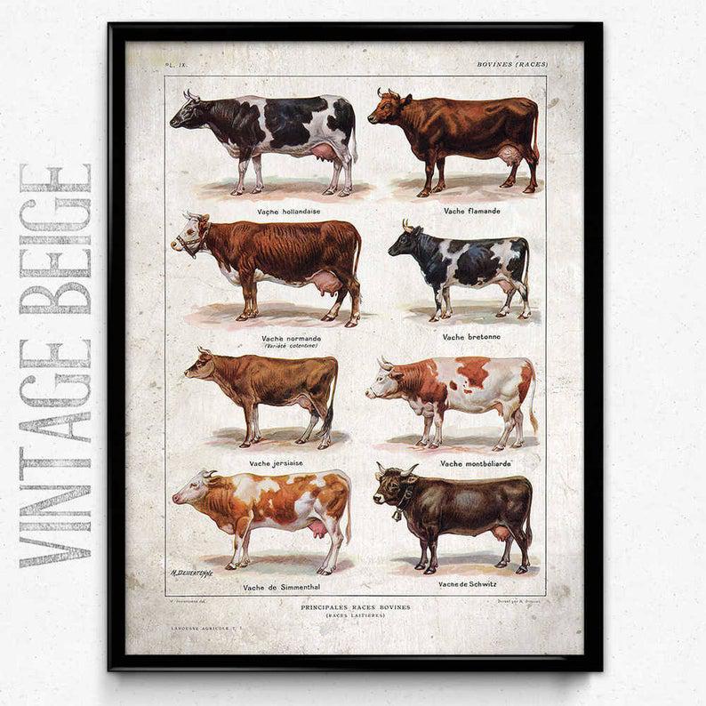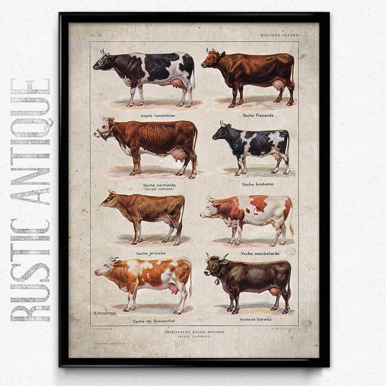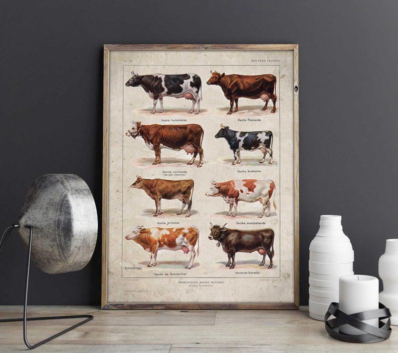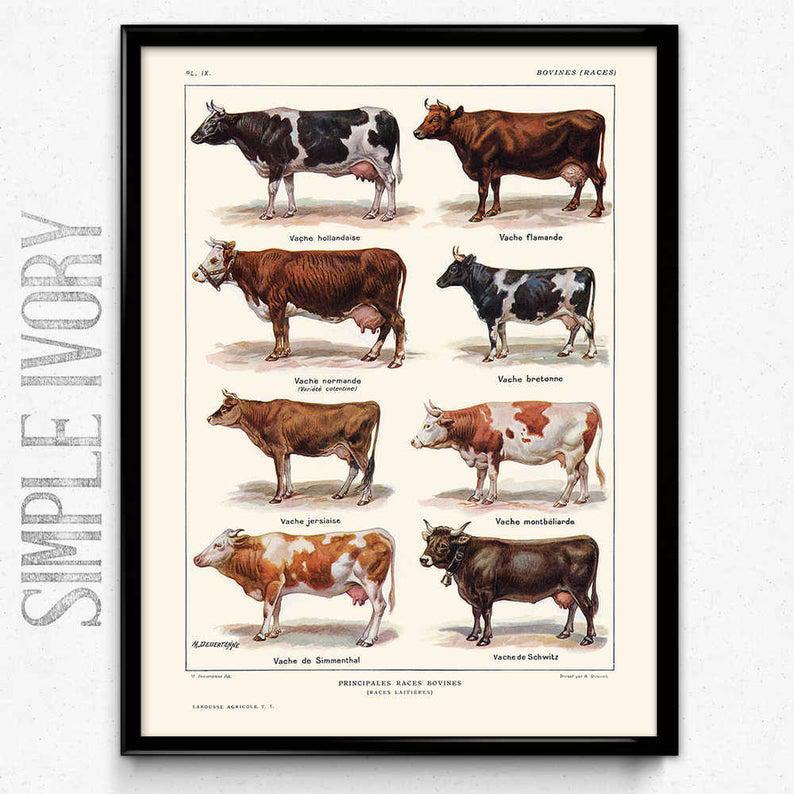 Cows Breeds Vintage Print 1 – Cow Poster – Cow Art – Cow Picture – Cow Illustration – Kitchen Decor – Kitchen Art – Farm – Larousse (Vp1056)