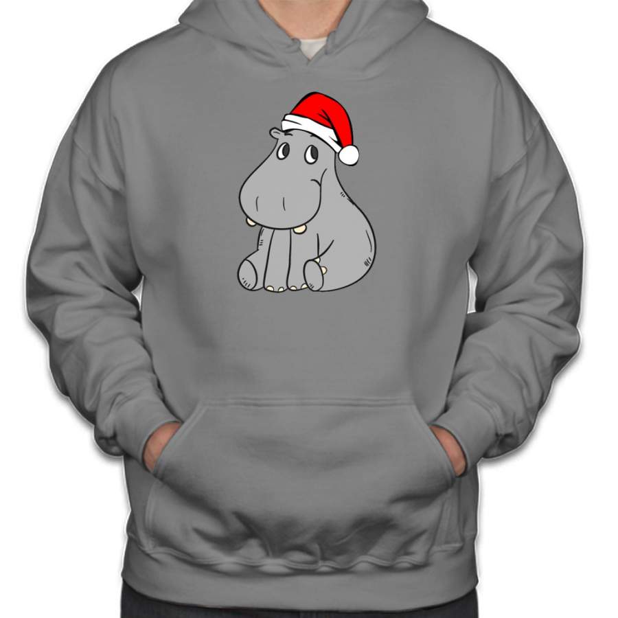 Cute Baby Hippopotamus Christmas with Xmas Santa Hat Hoodie