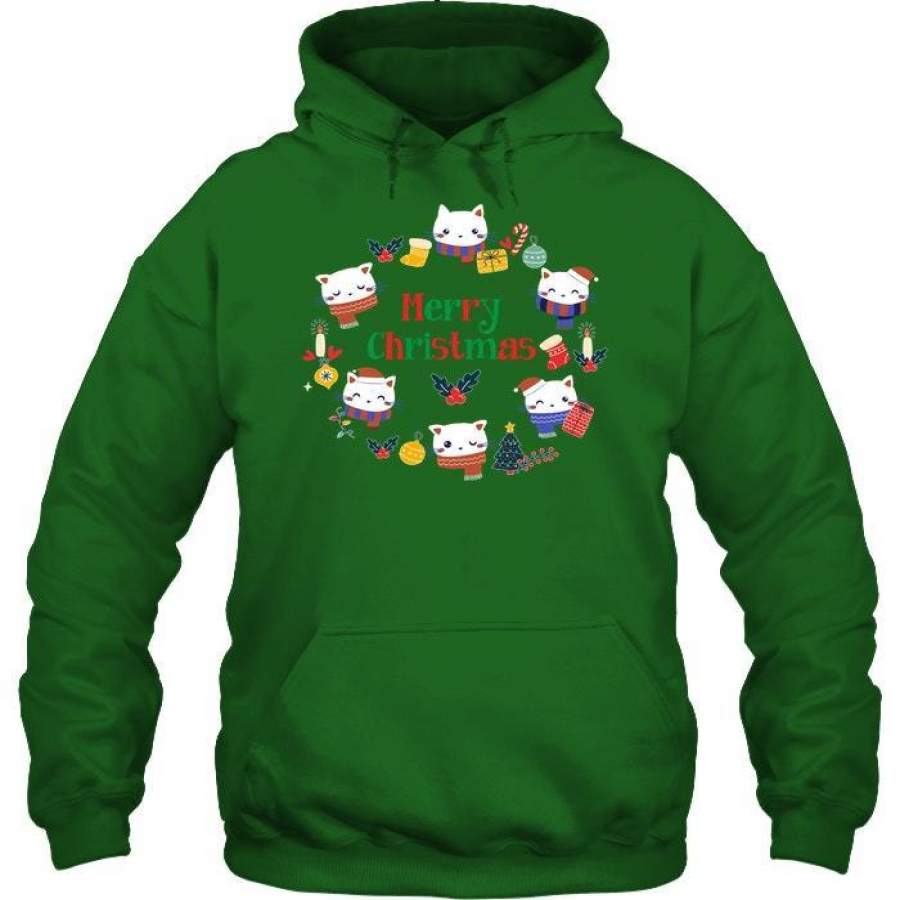Cute Cat Merry Christmas Xmas Gift Hoodie