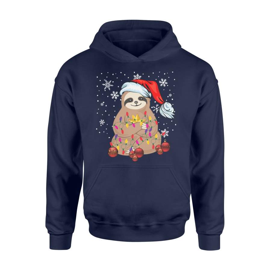 Cute Christmas Sloth Santa Led Light string Sweatshirt – Standard Hoodie