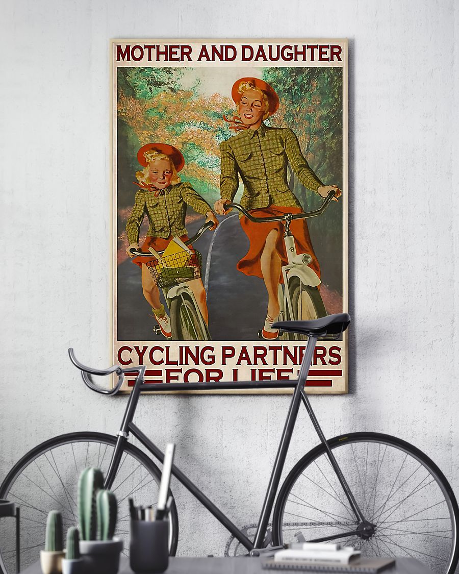 Cycling Mother And Daughter Vertical Canvas And Poster | Wall Decor Visual Art