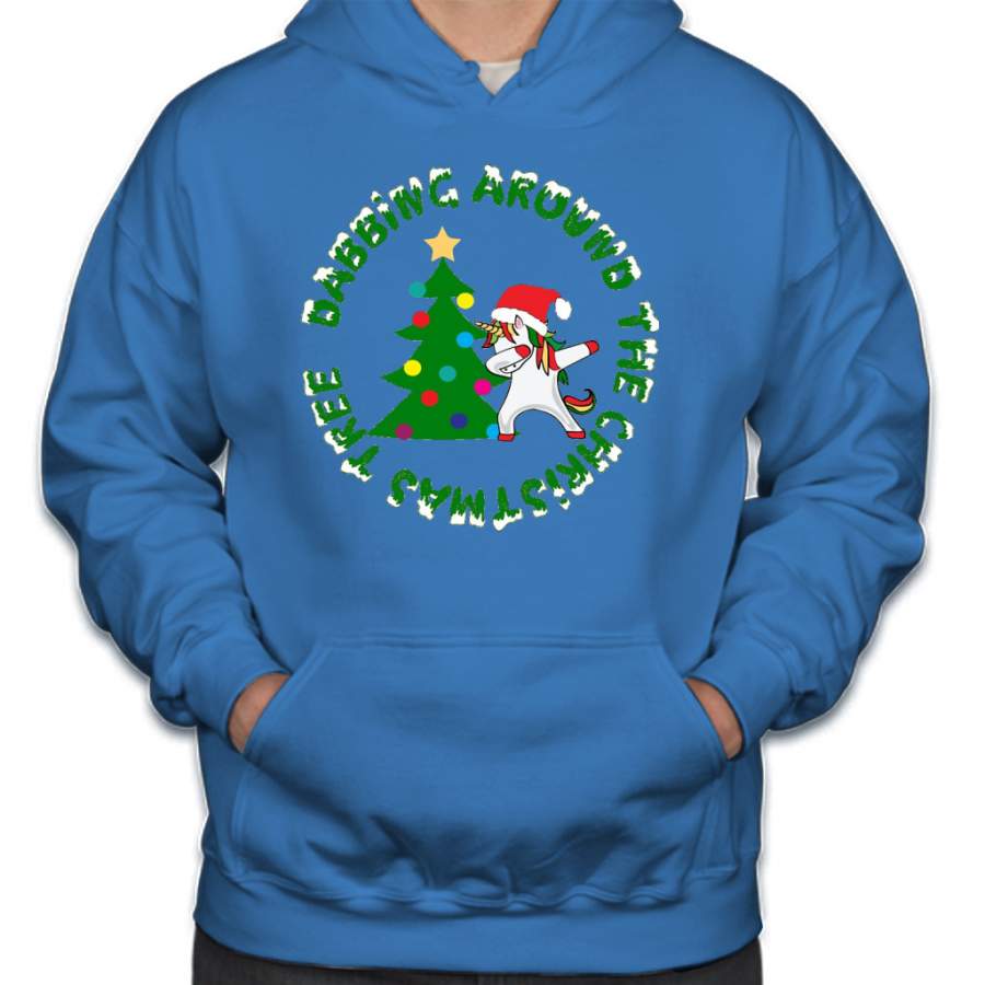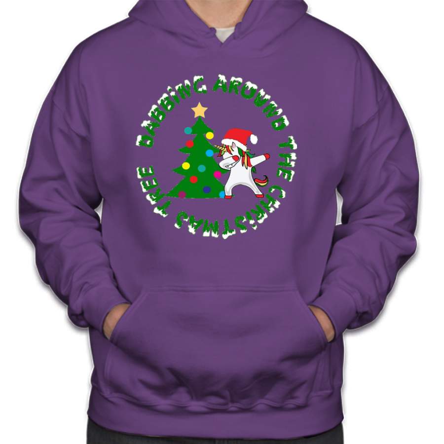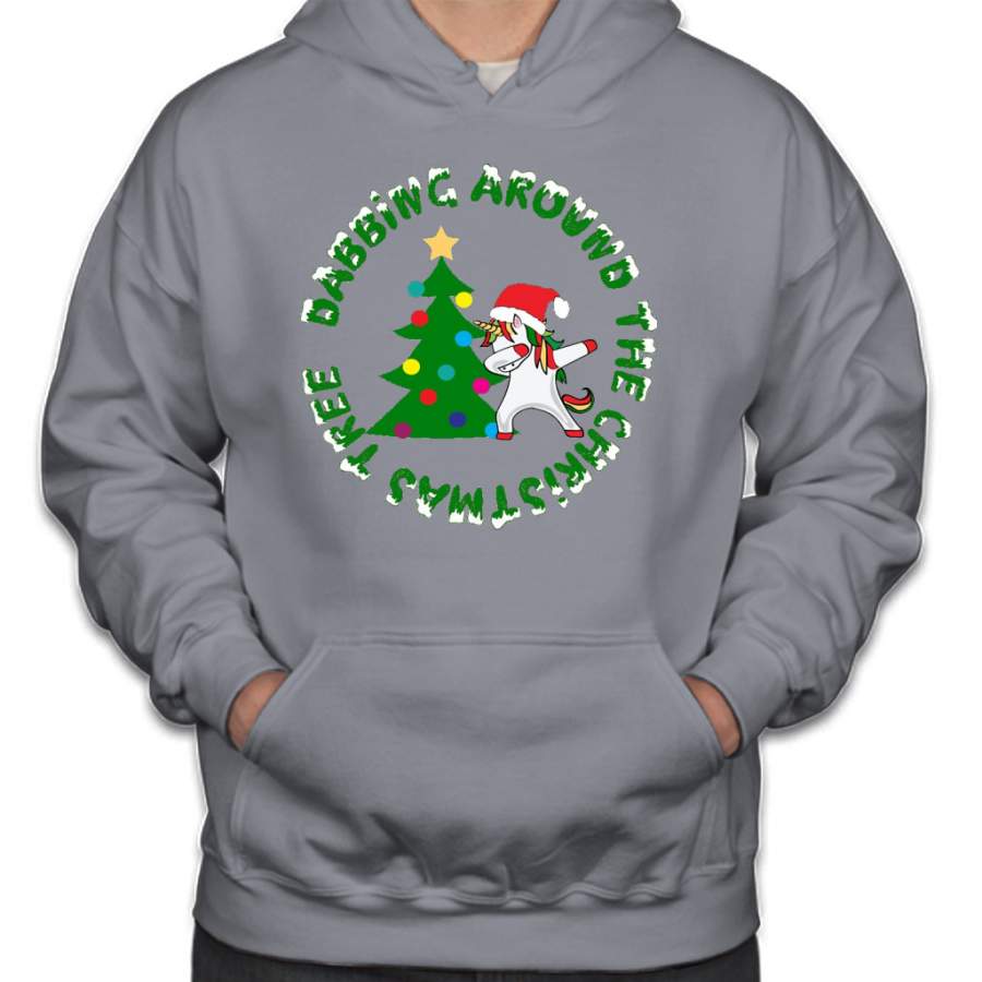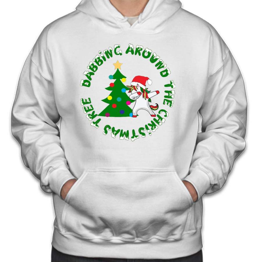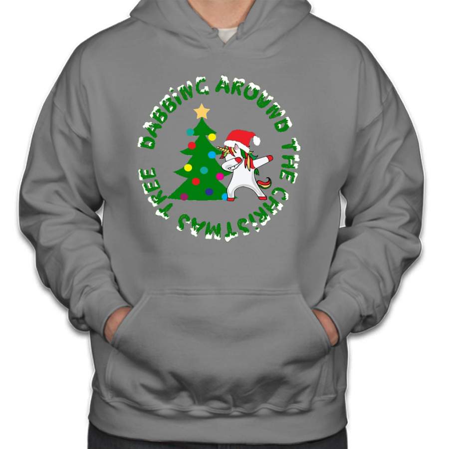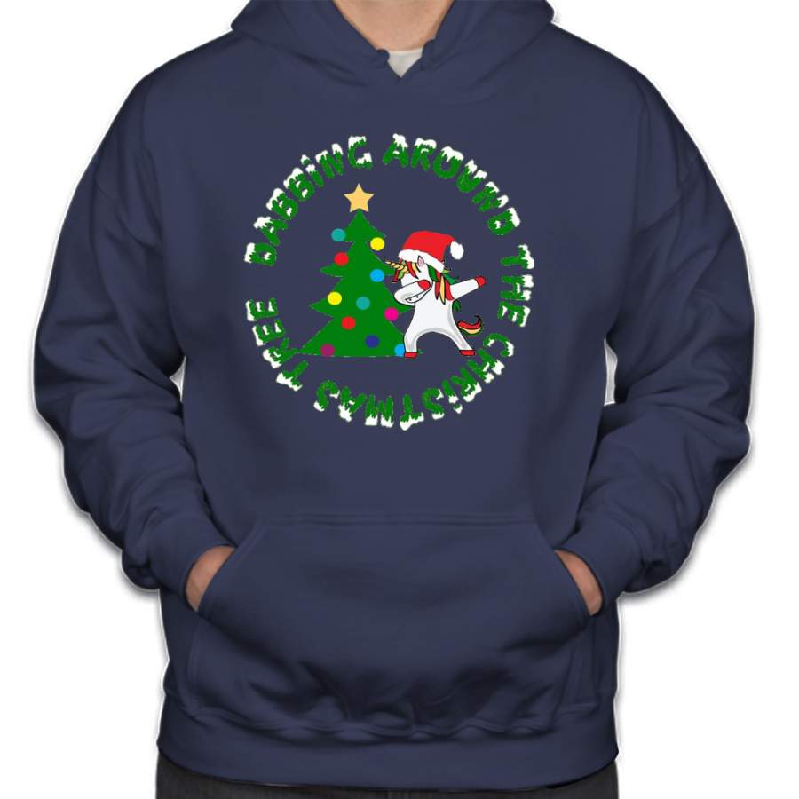 Dabbing Around The Christmas Tree Unicorn Snow Green Hoodie