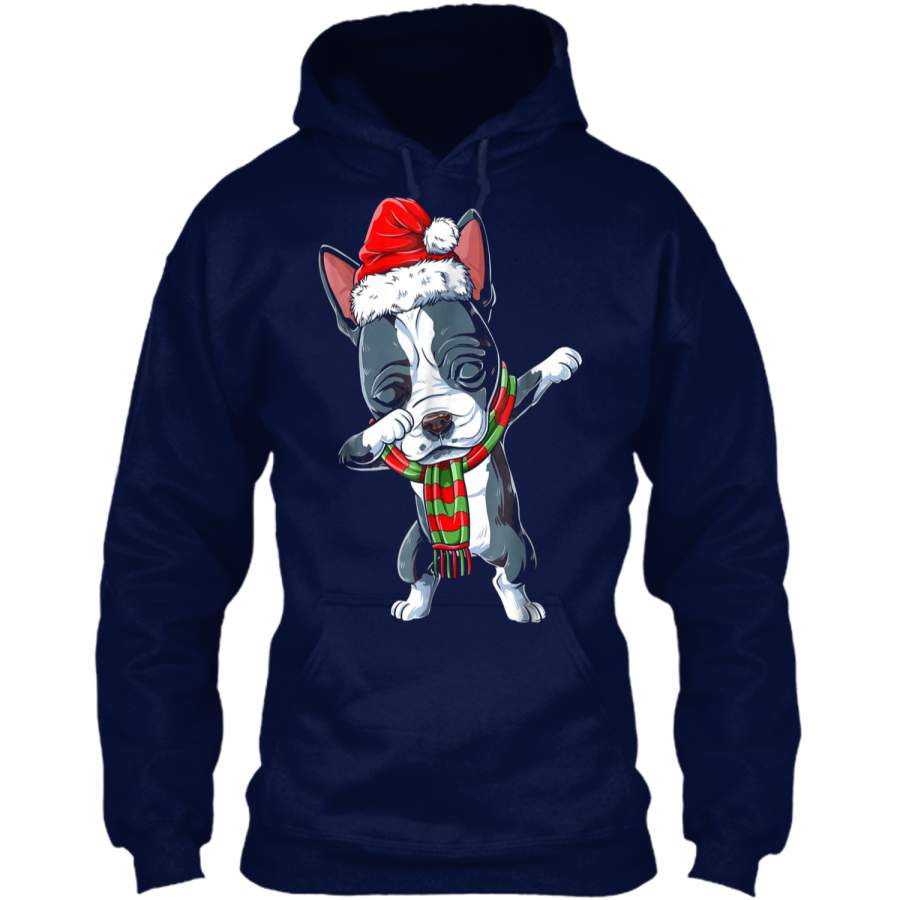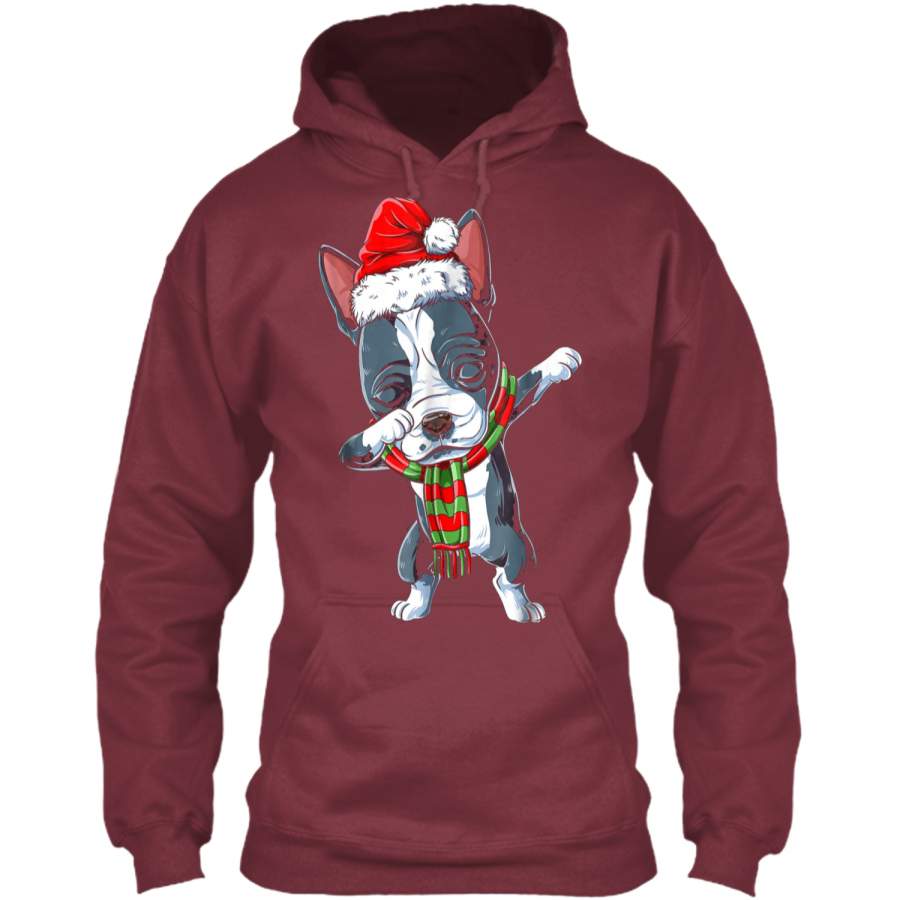 Dabbing Boston Terrier Santa Christmas kids Gifts Pullover Hoodie 8 oz