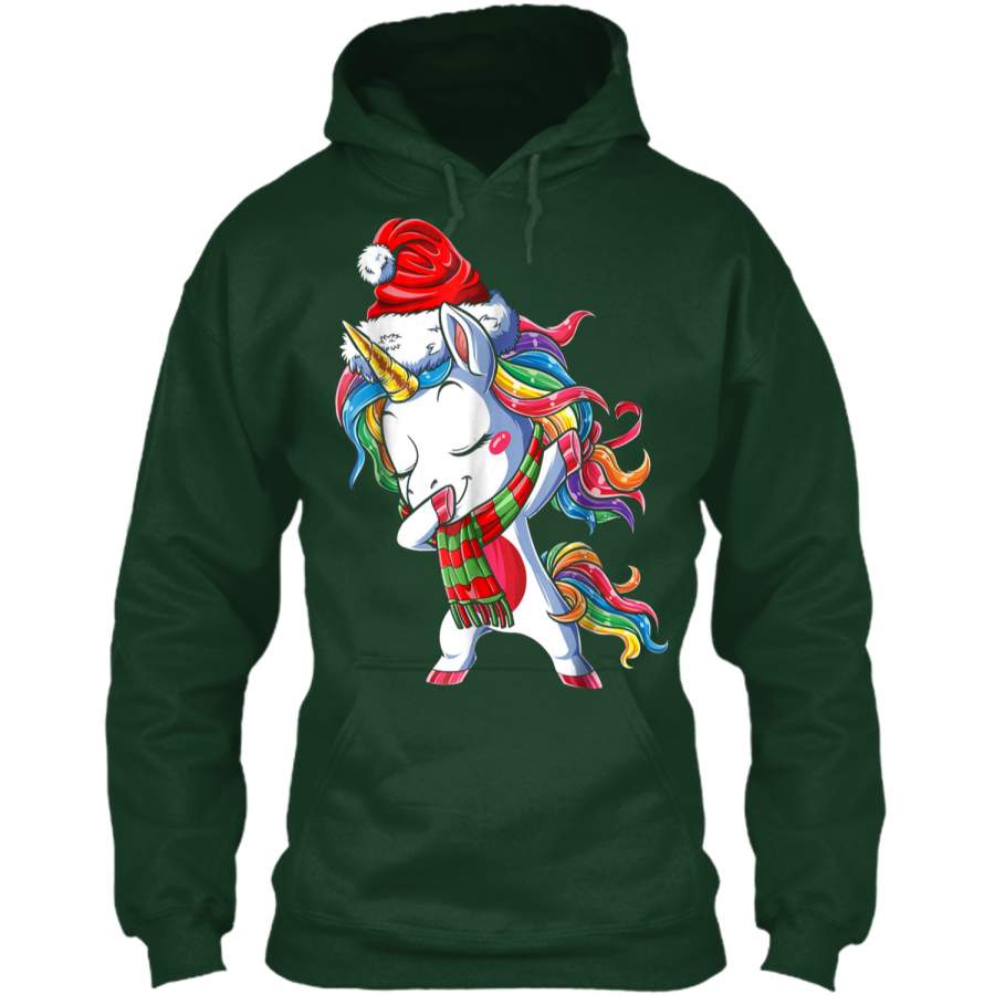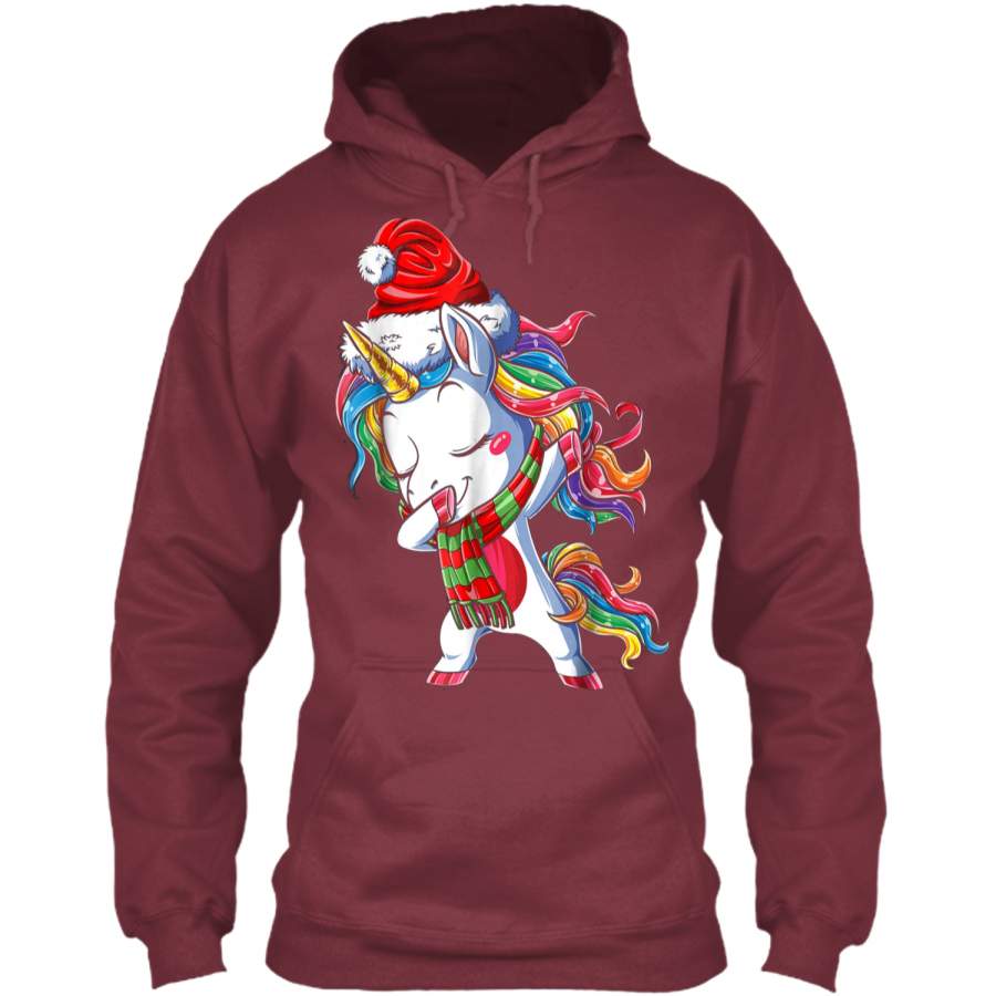 Dabbing Unicorn Christmas Girls Santa Hat Scarf Xmas Pullover Hoodie 8 oz
