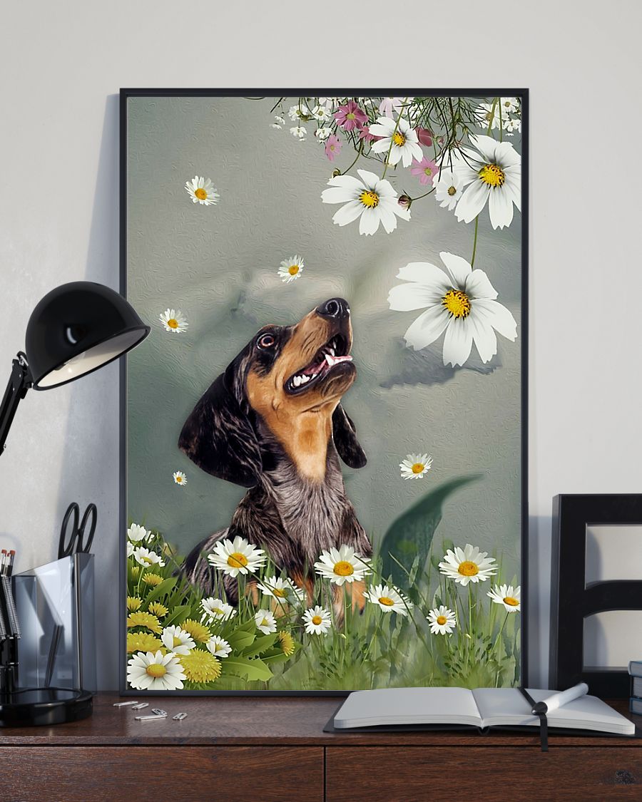 Dachshund Daisy Flower Poster Print, Canvas Print Wall Art, Canvas Poster Wall Decor