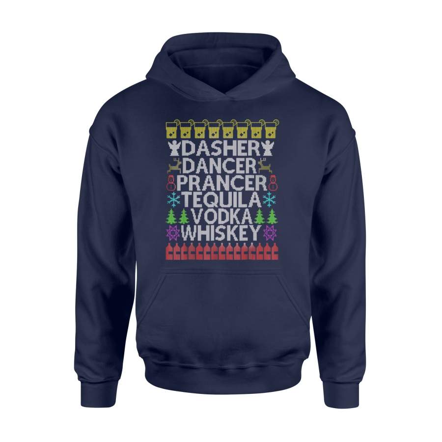 Dasher Dancer Tequila Vodka Ugly Christmas List T Shirt – Standard Hoodie
