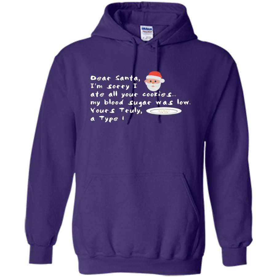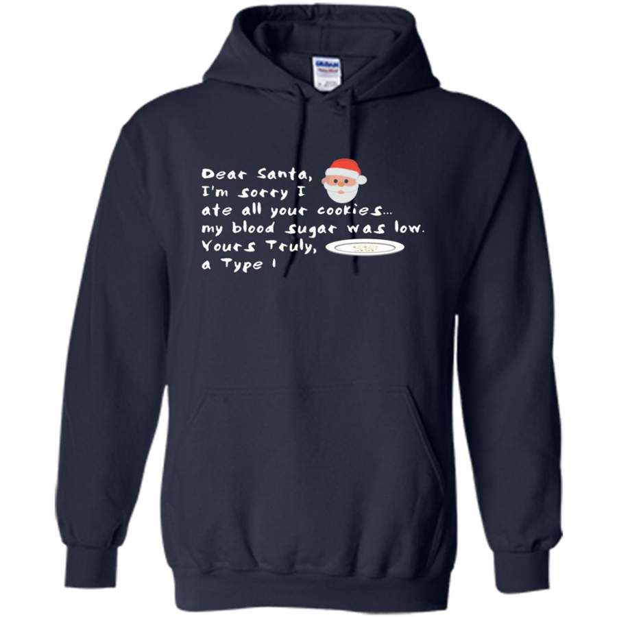 Dear Santa I’m Sorry I Ate All Christmas Cookies My Blood Sugar Was Low Yours Truly A Type – Gildan Heavy Blend Hoodie