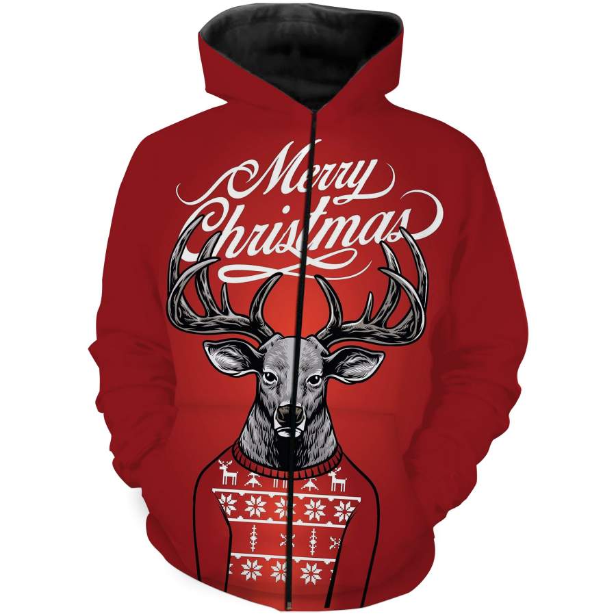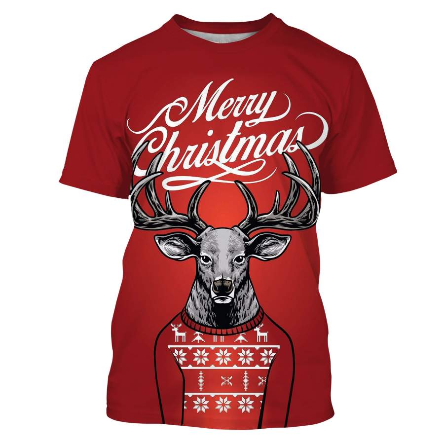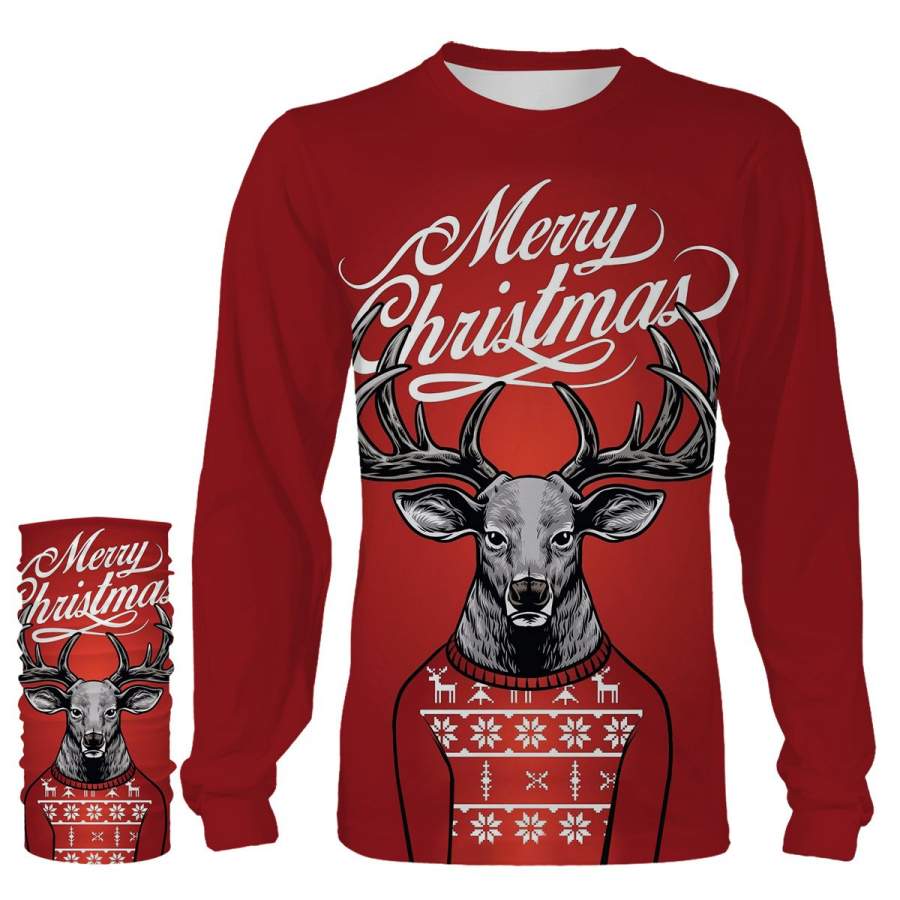 Deer Christmas Hunting christmas clothes 3D All over print T-shirt, Sweatshirt, Long sleeves, Hoodie – Gifts for hunters Christmas hunting gift for Men, Women and Kid – FSD531