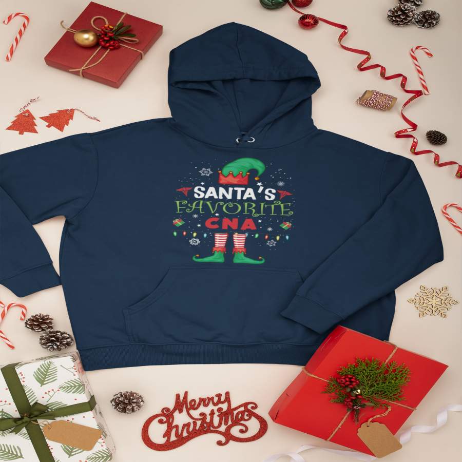 Dngfashion ‘s Santa’s Favorite CNA – CNA Shirt – Christmas Tree – CNA Elf Shirt – Standard Hoodie – – –