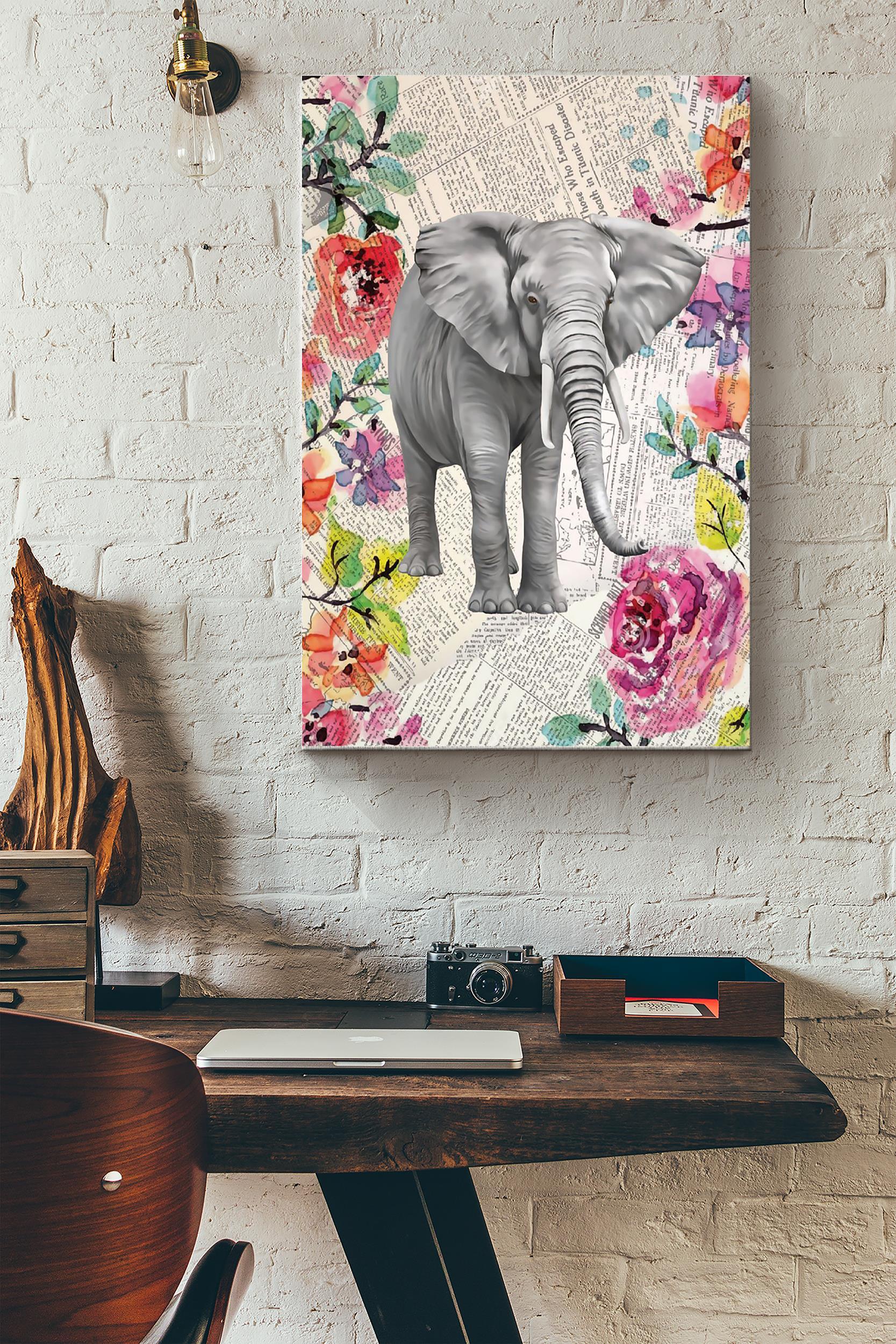 Elephant And Flowers Vintage Poster Wrapped Canvas